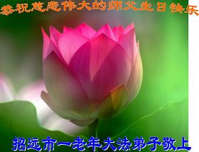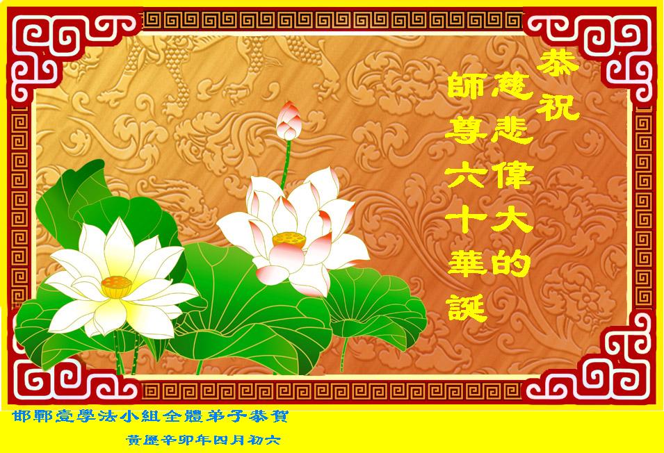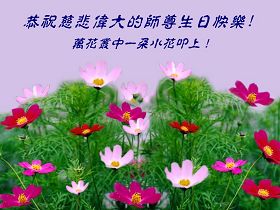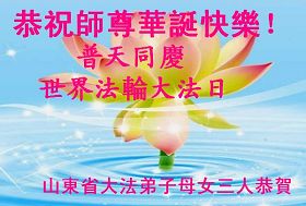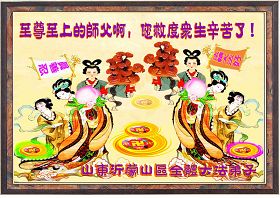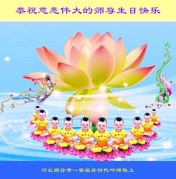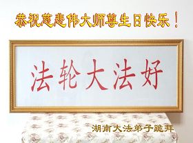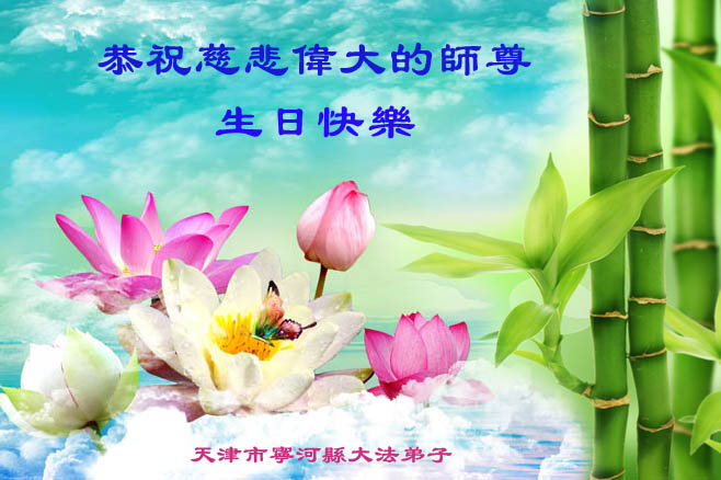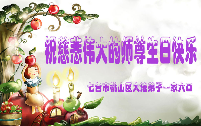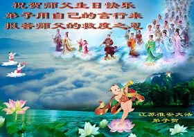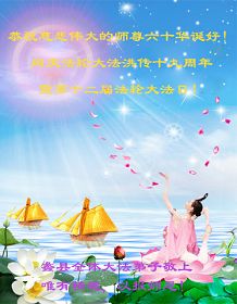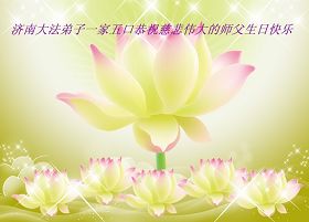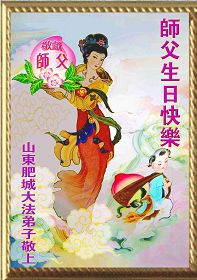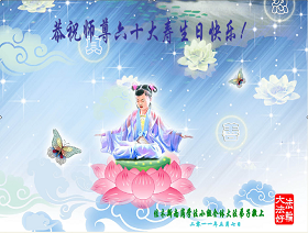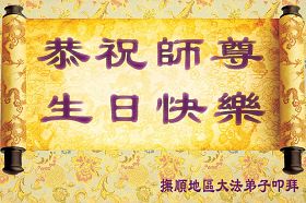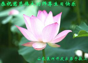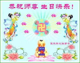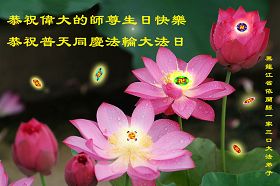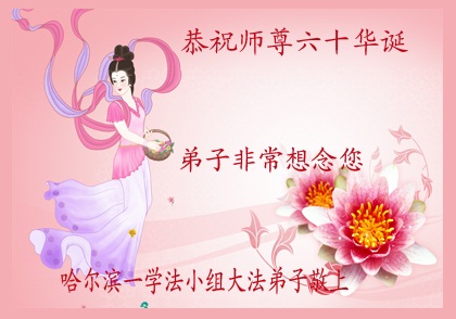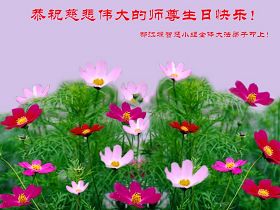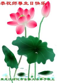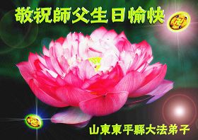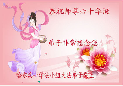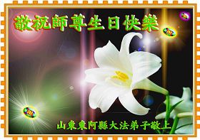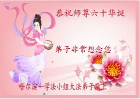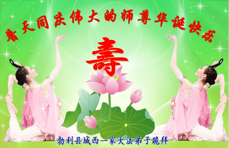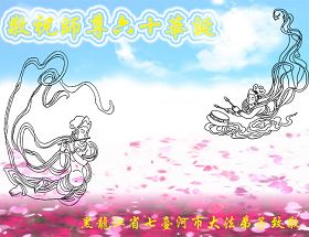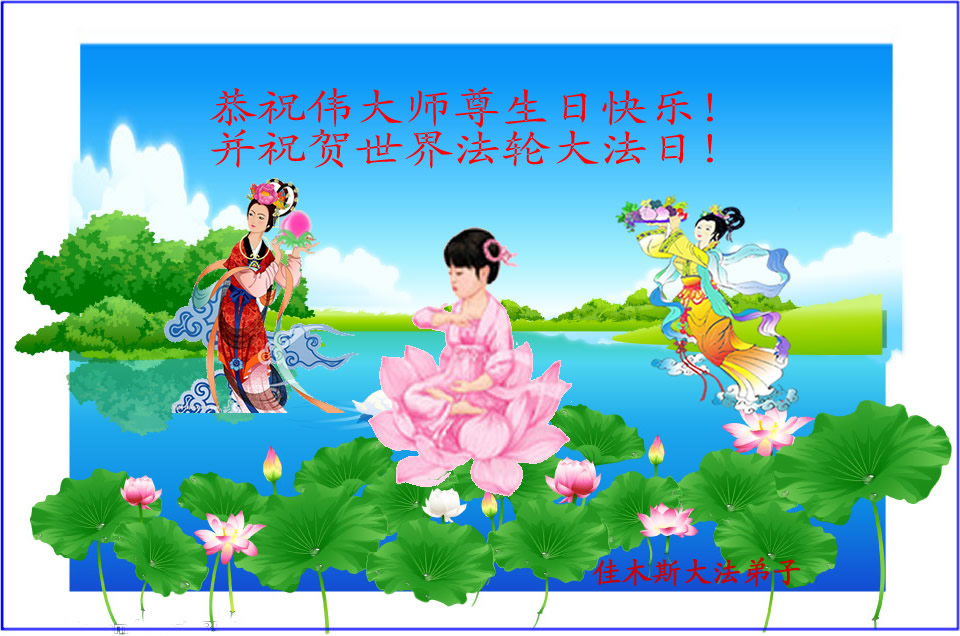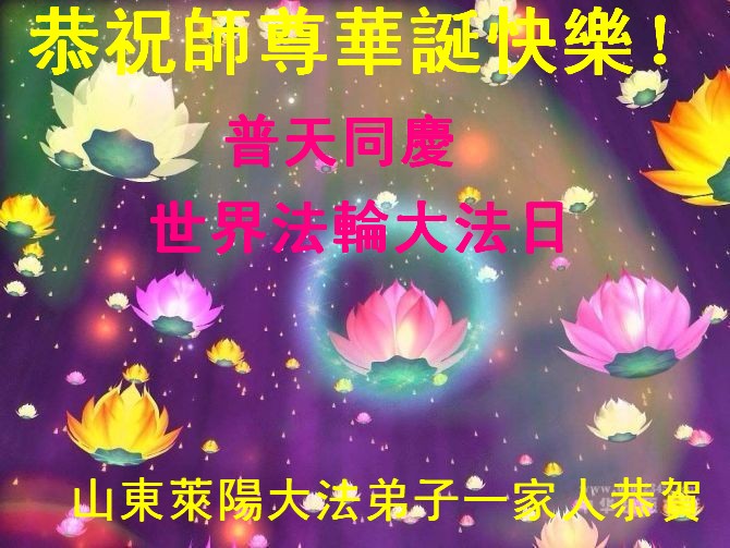 在师尊六十华诞即将到来之际,我和家人同修向慈悲伟大的师尊叩拜:祝师尊生日快乐!愿师尊多欣慰、少操劳。在这个特殊的历史时期,我们能成为您的弟子,与师尊同在,与正法同在,我们有多么的幸运,有多么的荣耀。我们无法用语言来表达对师尊慈悲救度的感恩!我们只有加倍努力,做好“三件事”,做好正法时期大法弟子应尽的责任与使命,勇猛精進,才不辜负师尊慈悲苦度。