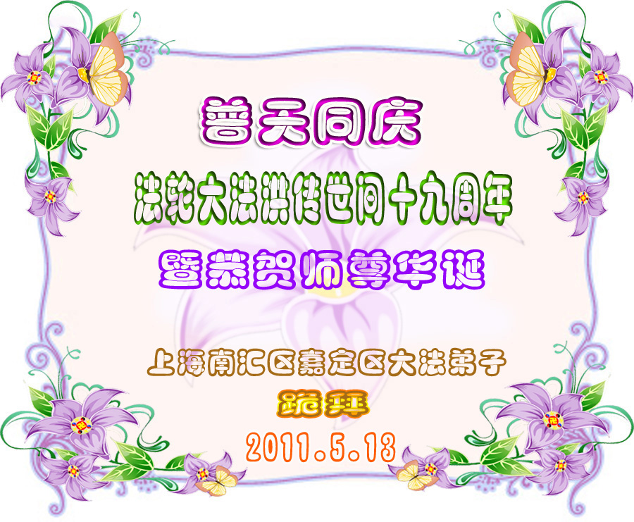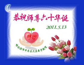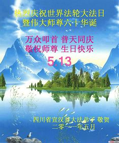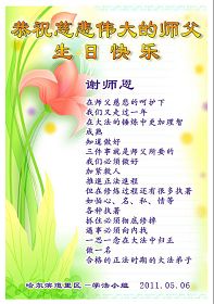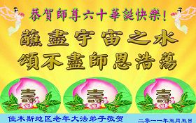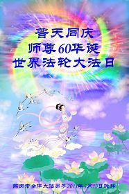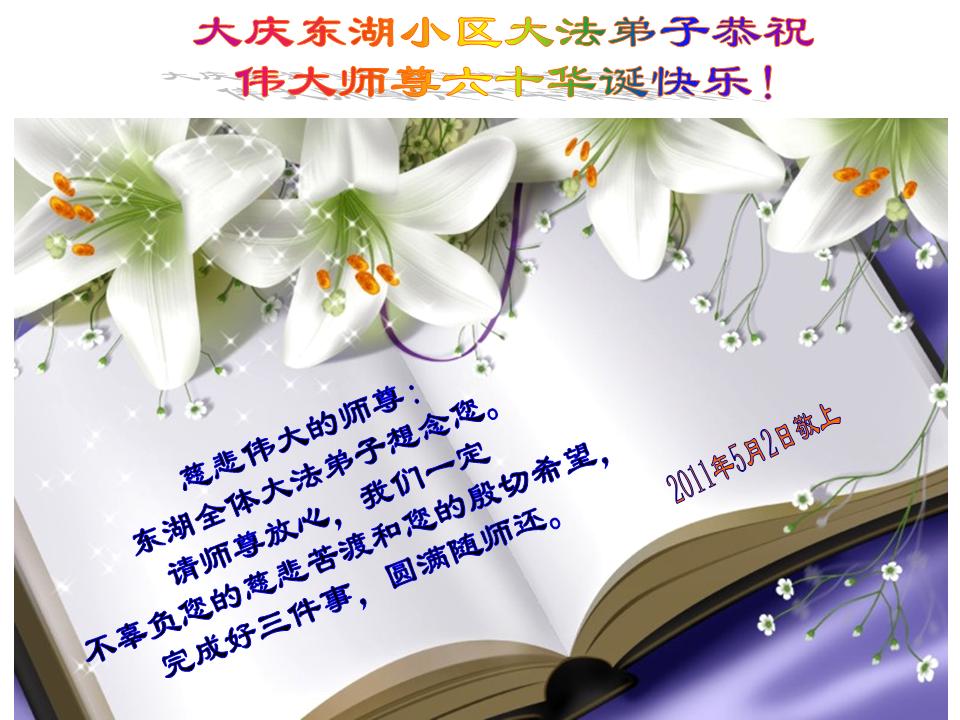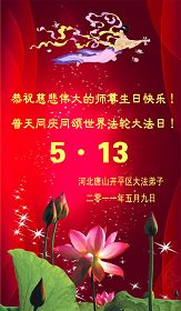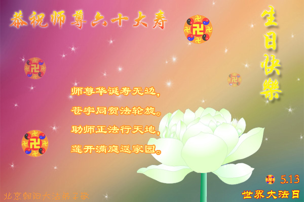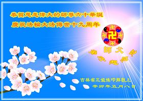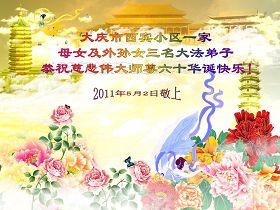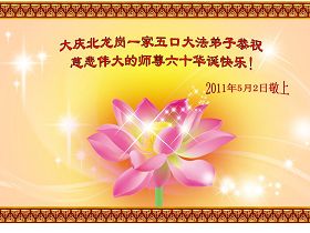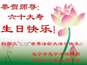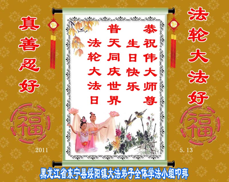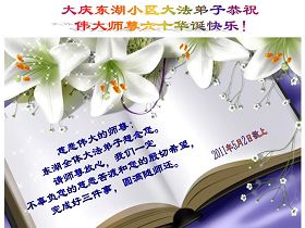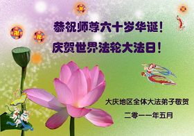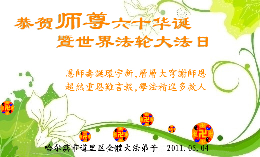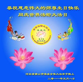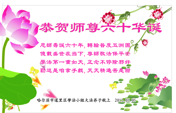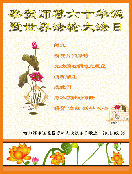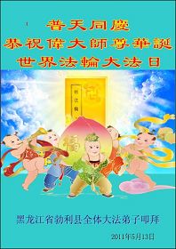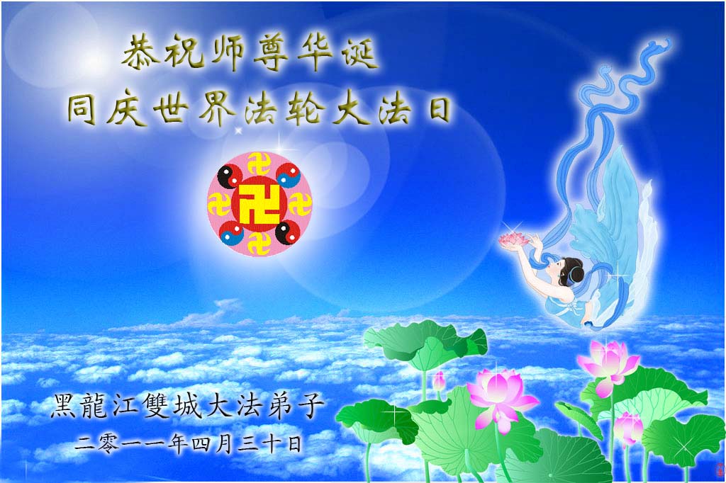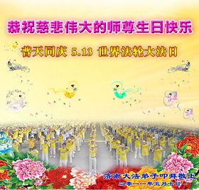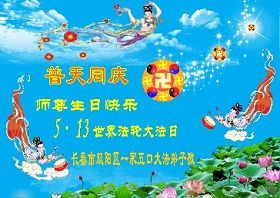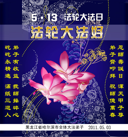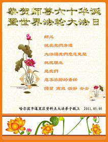 <英文版: http://www.clearwisdom.net/html/articles/2011/5/14/125198.html>东北大法弟子贺师尊华诞暨法轮大法日(200地)