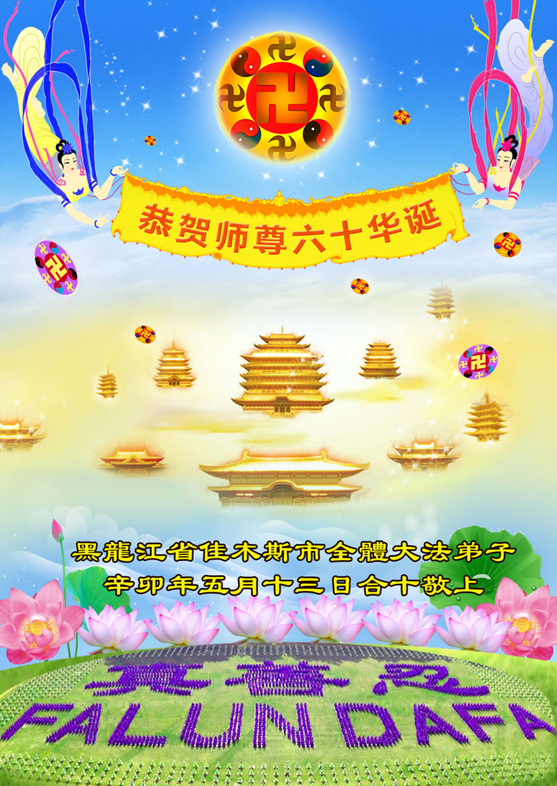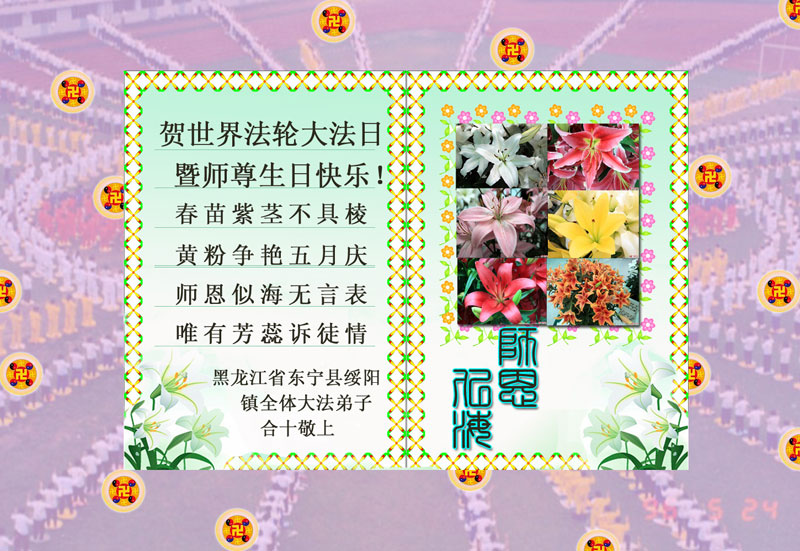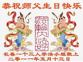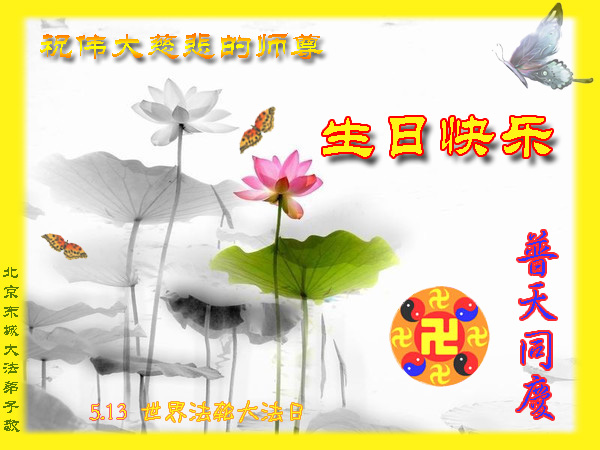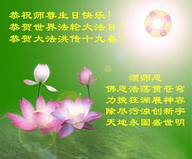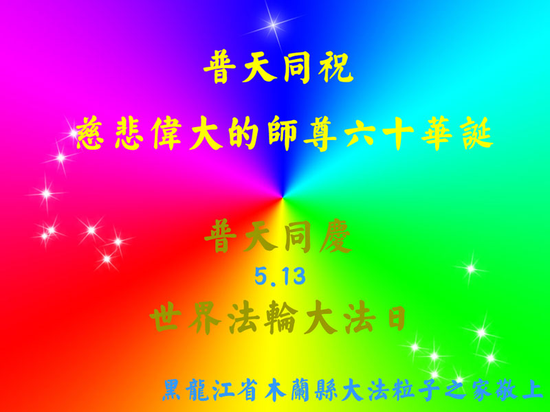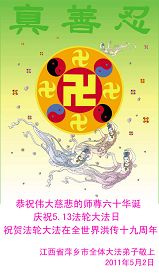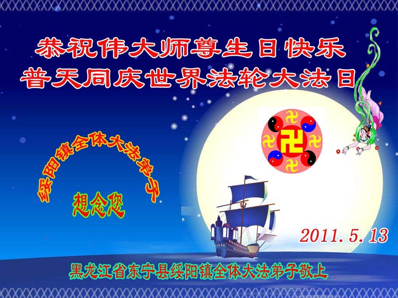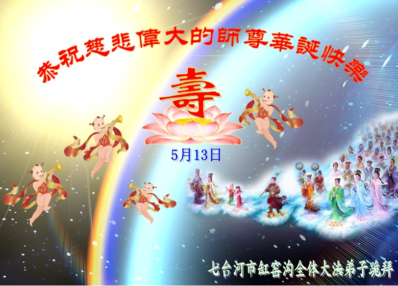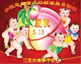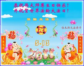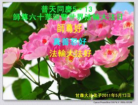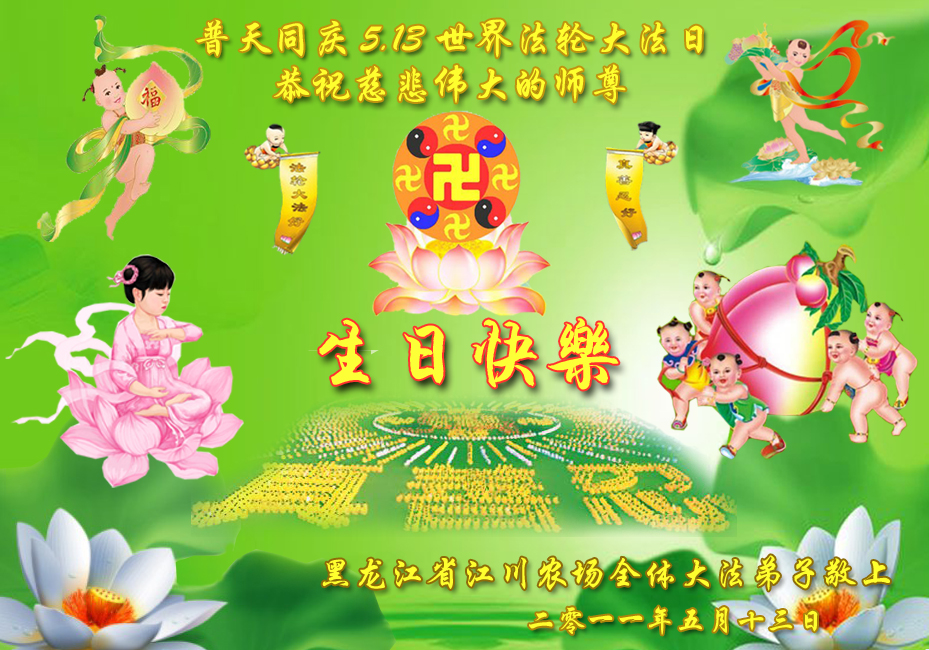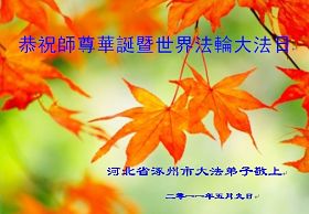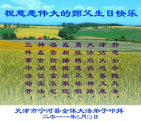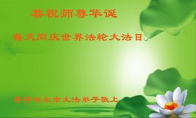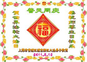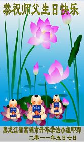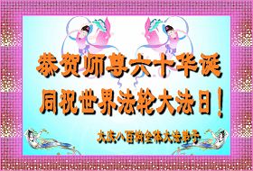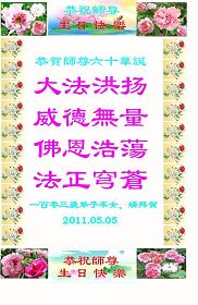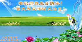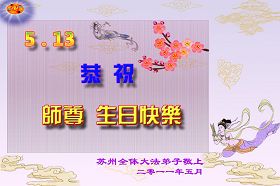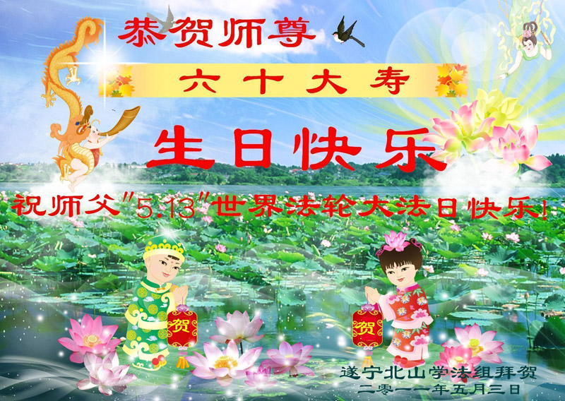 <英文版: http://www.clearwisdom.net/html/articles/2011/5/14/125198.html>东北大法弟子贺师尊华诞暨法轮大法日(200地)