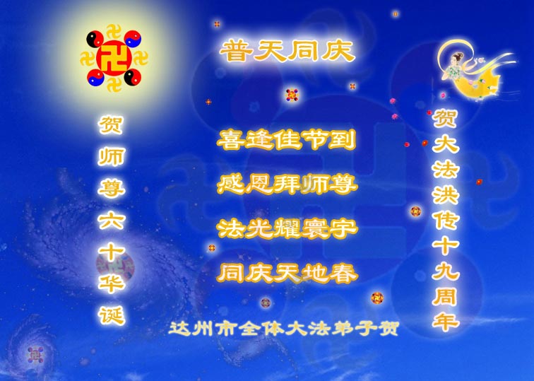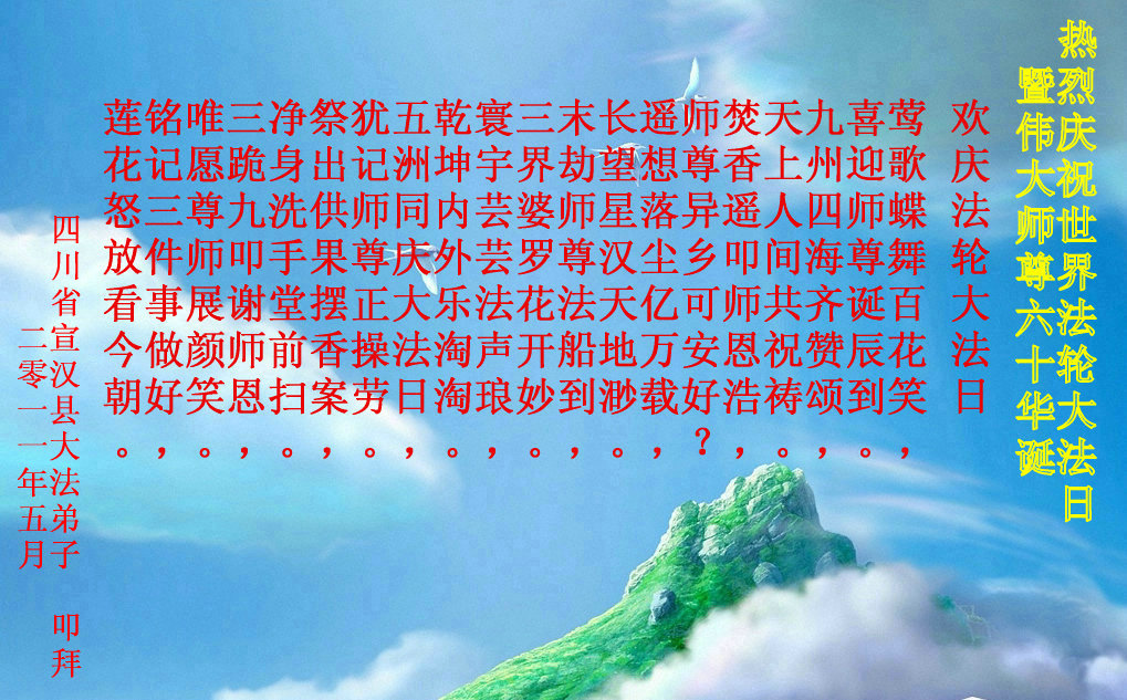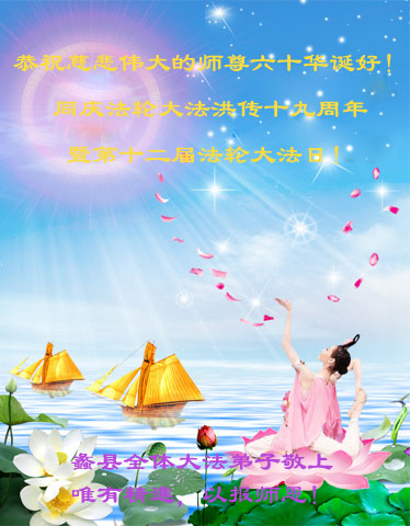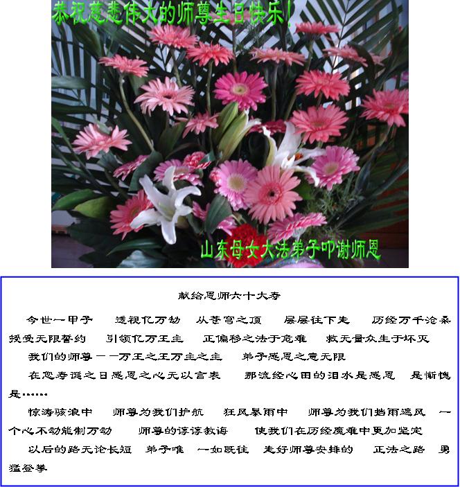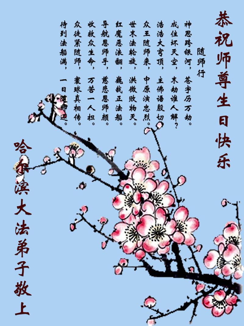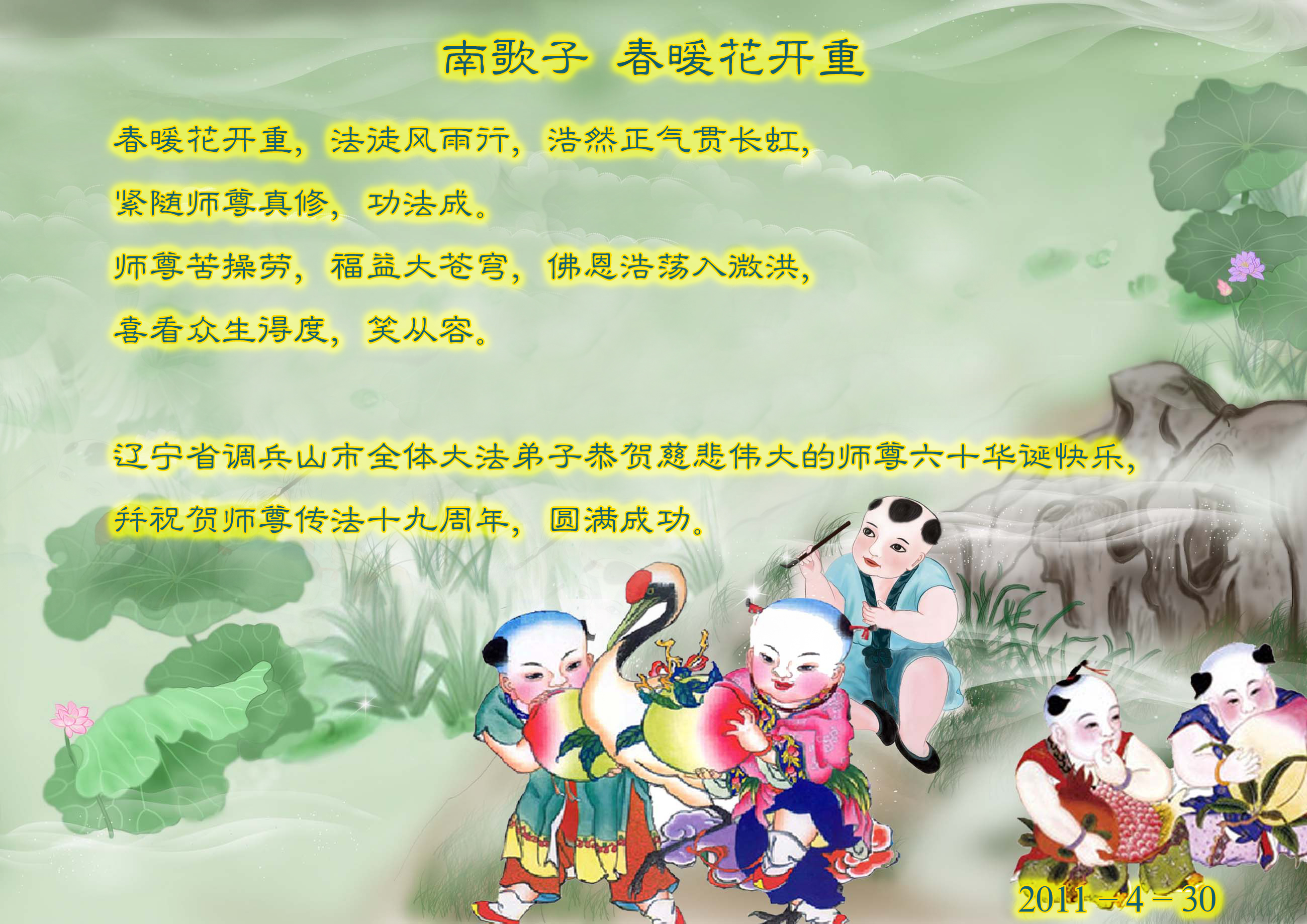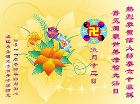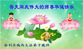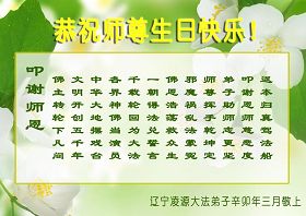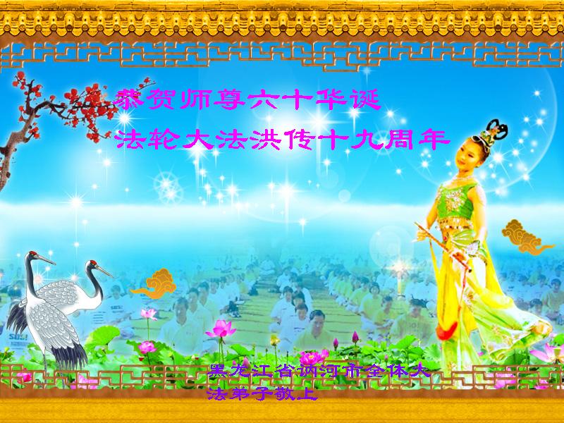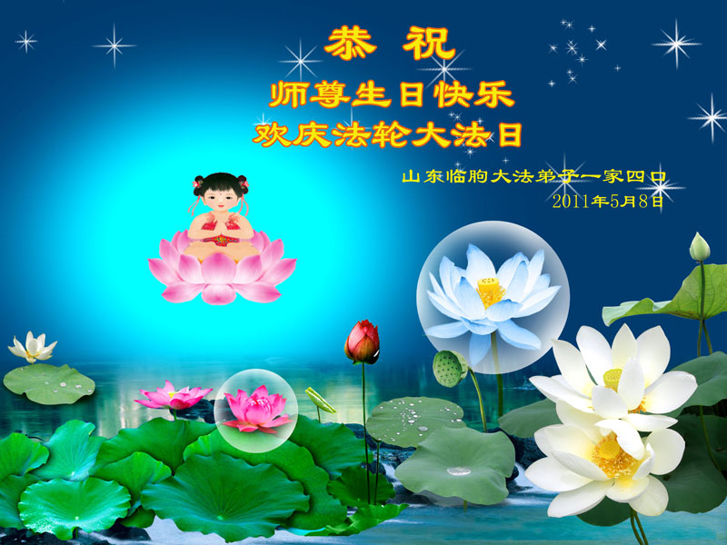 <英文版: http://www.clearwisdom.net/html/articles/2011/5/14/125198.html>东北大法弟子贺师尊华诞暨法轮大法日(200地)
