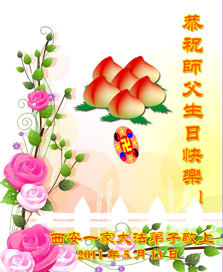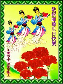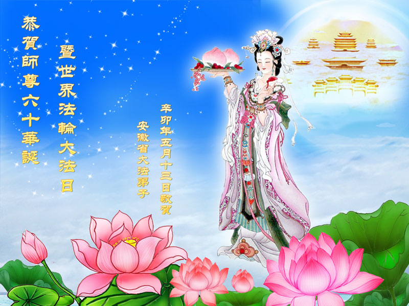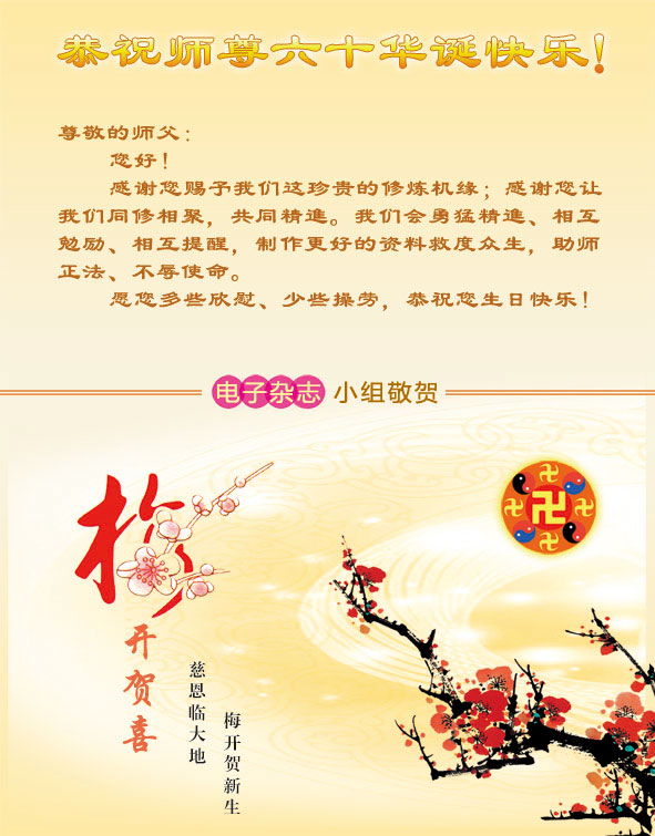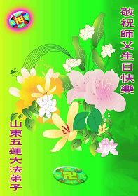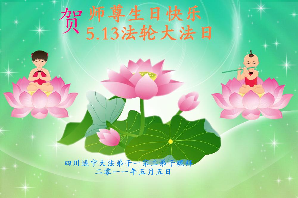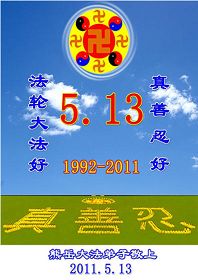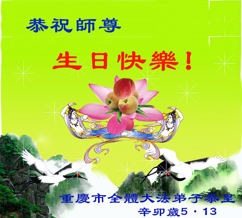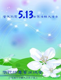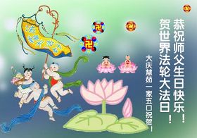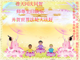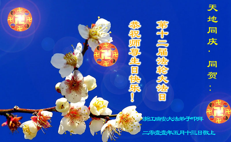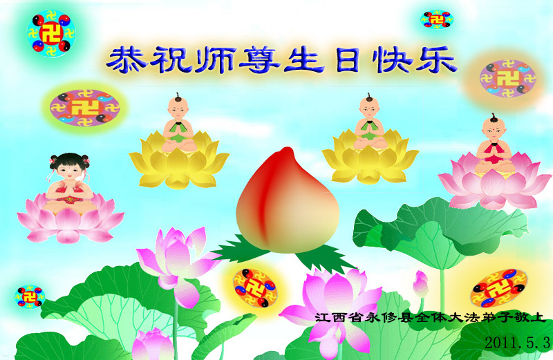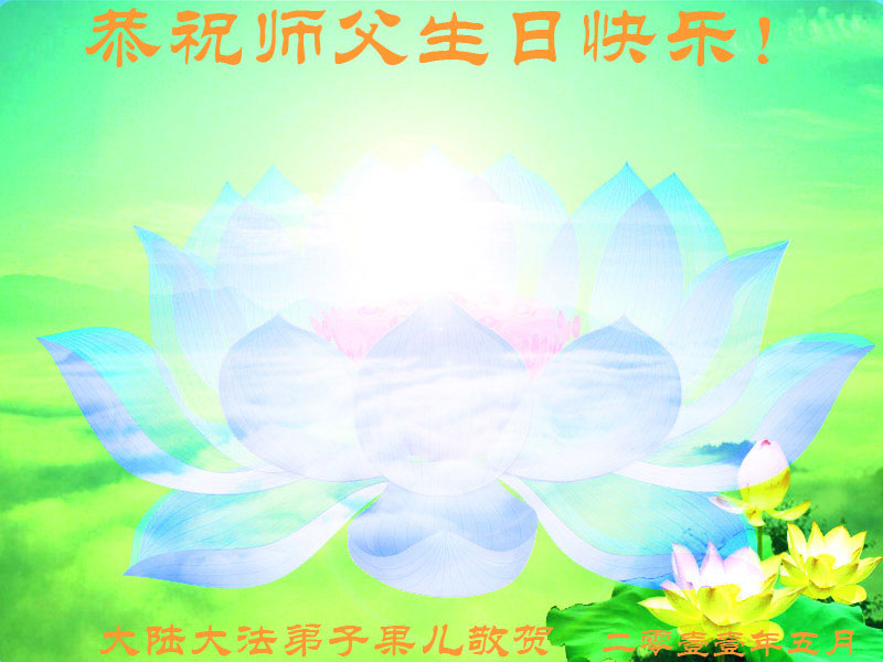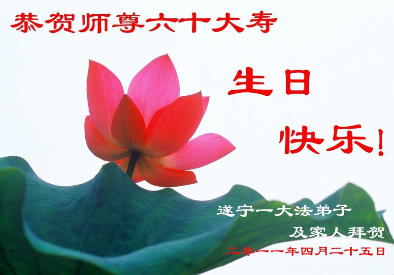 【明慧网二零一一年五月十二日】每年的5月13日,世界各地的法轮大法弟子,都向明慧网寄来贺卡贺词,恭贺师尊华诞,并庆祝“世界法轮大法日”。今日明慧网发表了中国大陆各地(东北、华北、西北、西南、华中、华南、华东)大法弟子发给李洪志师父和“5.13”世界法轮大法日的祝贺。以下是部份贺卡集锦。