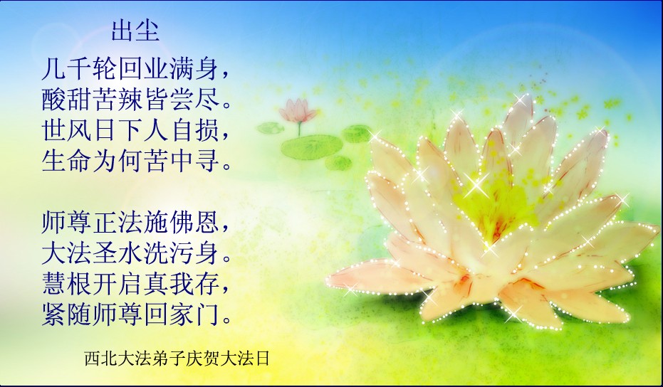 仔细想想,我很多时候没有达到法要求的标准,但慈悲的师父看我一直在修,不忍丢下我,一再给我机会,还是保护了我。我再也不会拿师父的慈悲当儿戏了!弟子决心严格要求自己,“正念正行 精進不停”(见《洪吟二》〈正神〉)。