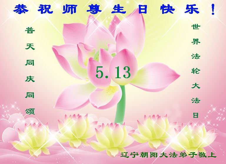 【明慧网二零一一年五月十二日】每年的5月13日,世界各地的法轮大法弟子,都向明慧网寄来贺卡贺词,恭贺师尊华诞,并庆祝“世界法轮大法日”。今日发表的,是中国大陆各地(东北、华北、西北、西南、华中、华南、华东)大法弟子通过明慧网发给李洪志师父和“5.13”世界法轮大法日的祝贺。这里是明慧编辑部已整理出来的部份东北地区(200 地)来信汇编: