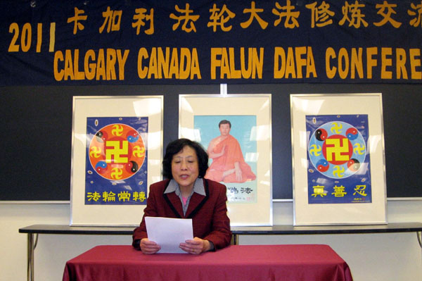 首先发言的是一位来卡城不久的老学员,她讲述了自己得法后身心受益的过程,以及之后,受到中共迫害、长期流离失所的经历。