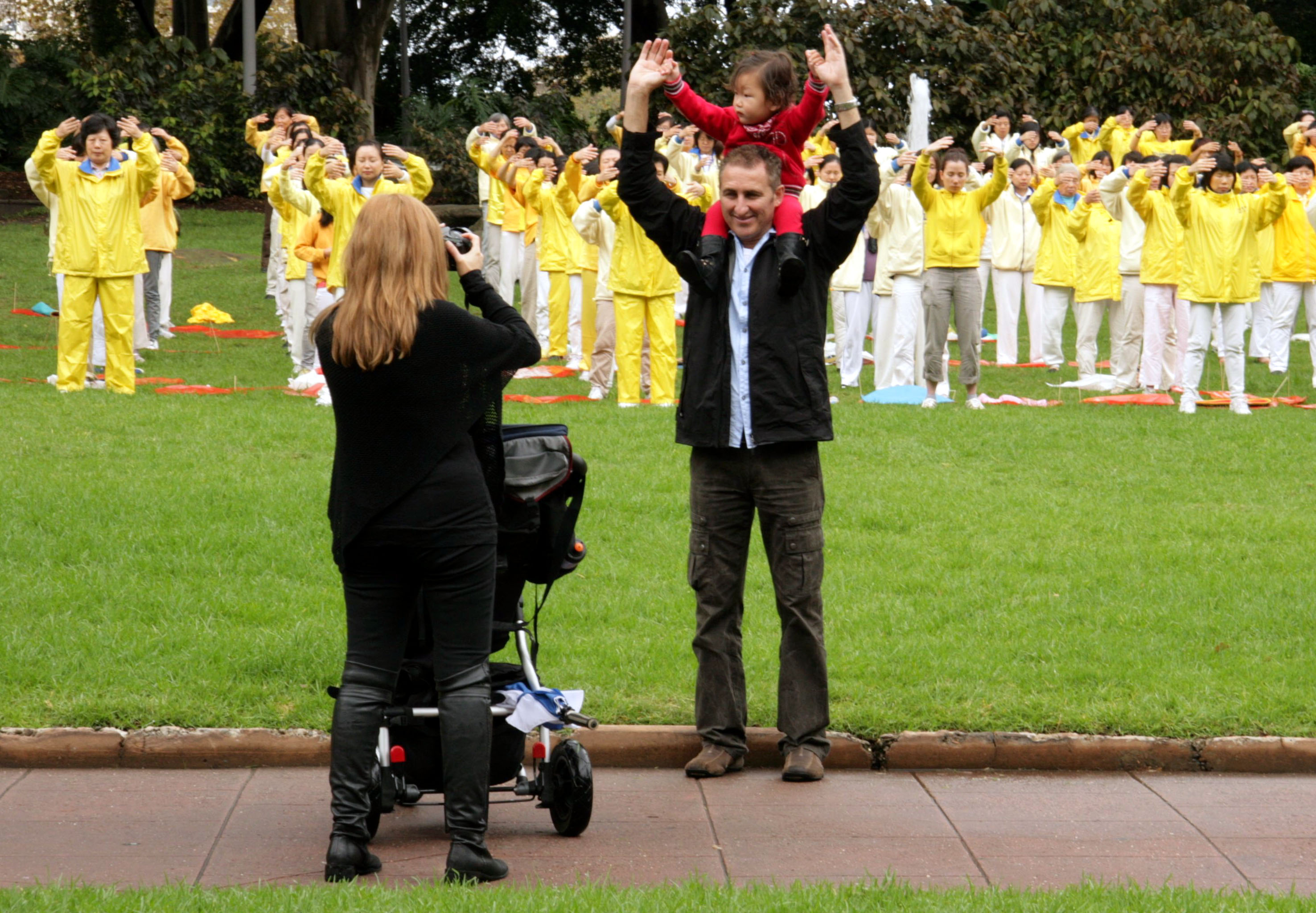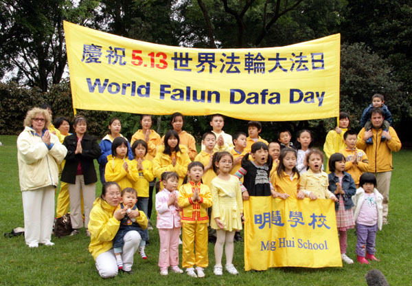 ![]() 庆祝“世界法轮大法日”,悉尼法轮功学员集体炼功。 |
