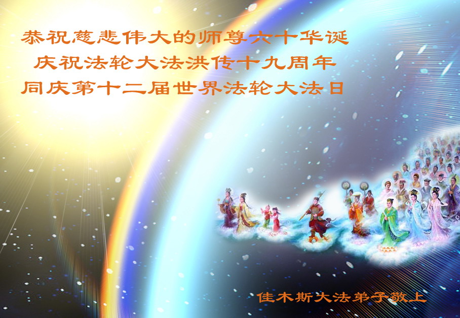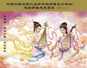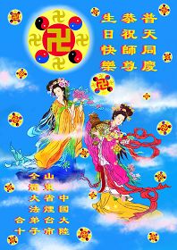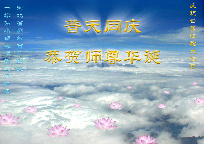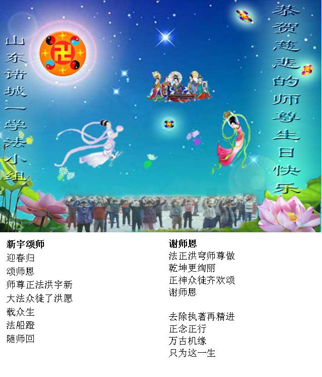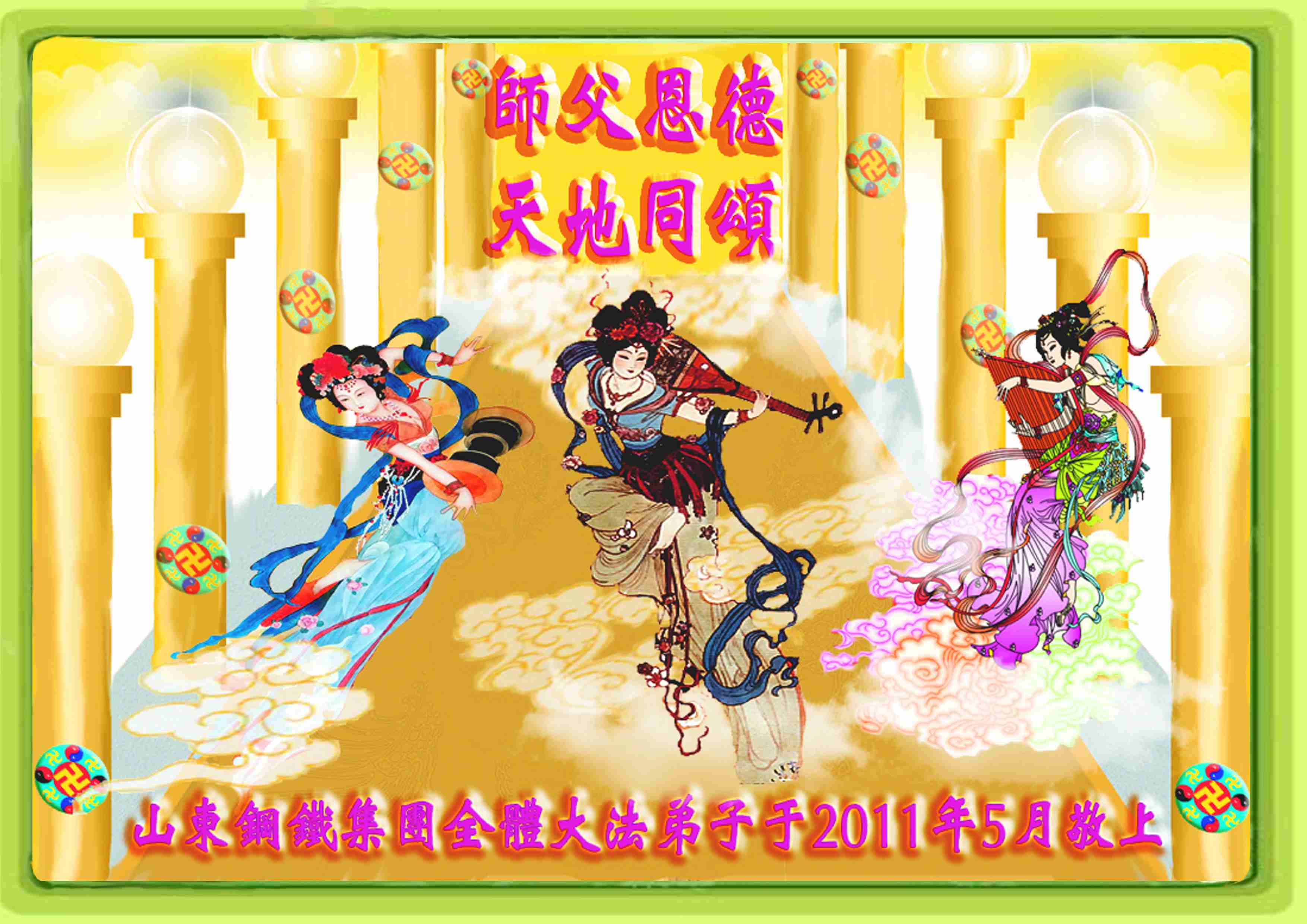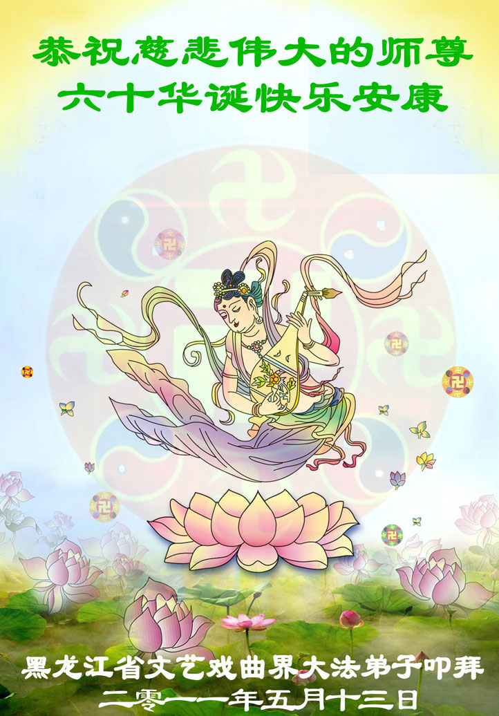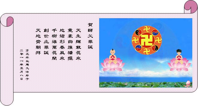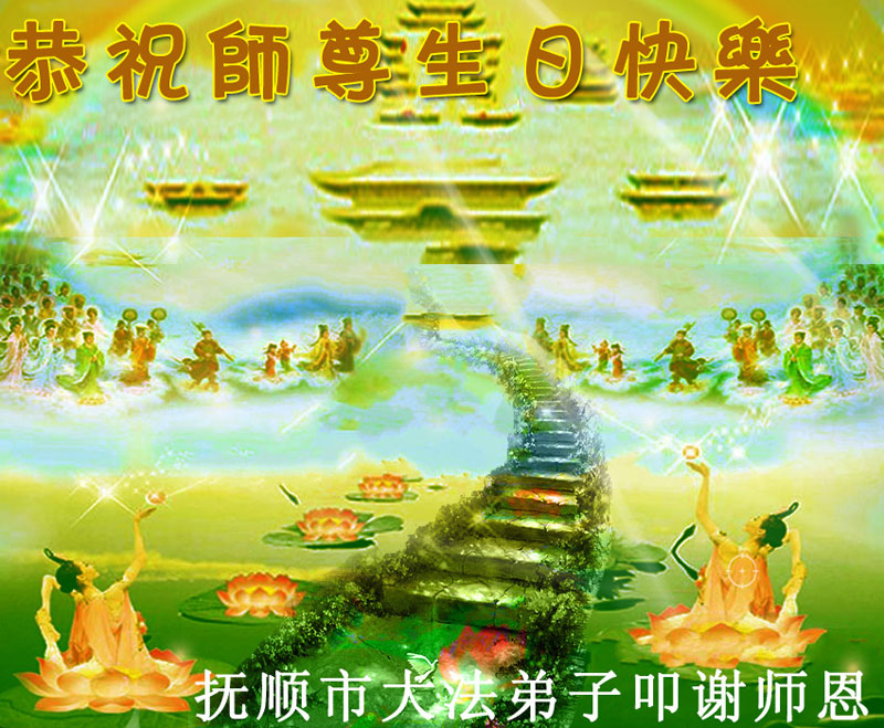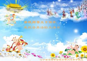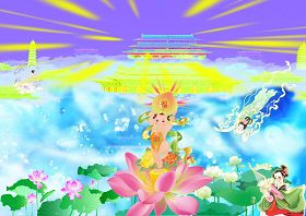 伴随着这种景象,响起了一种奇幻的音乐,并且有着天女散花。那时的我,心中有一种格外的崇敬,感觉是那样的纯正,又是那样的神圣,由衷的在心里唱起了《普度》、《济世》、《法轮大法好》等法轮功乐曲和歌曲。