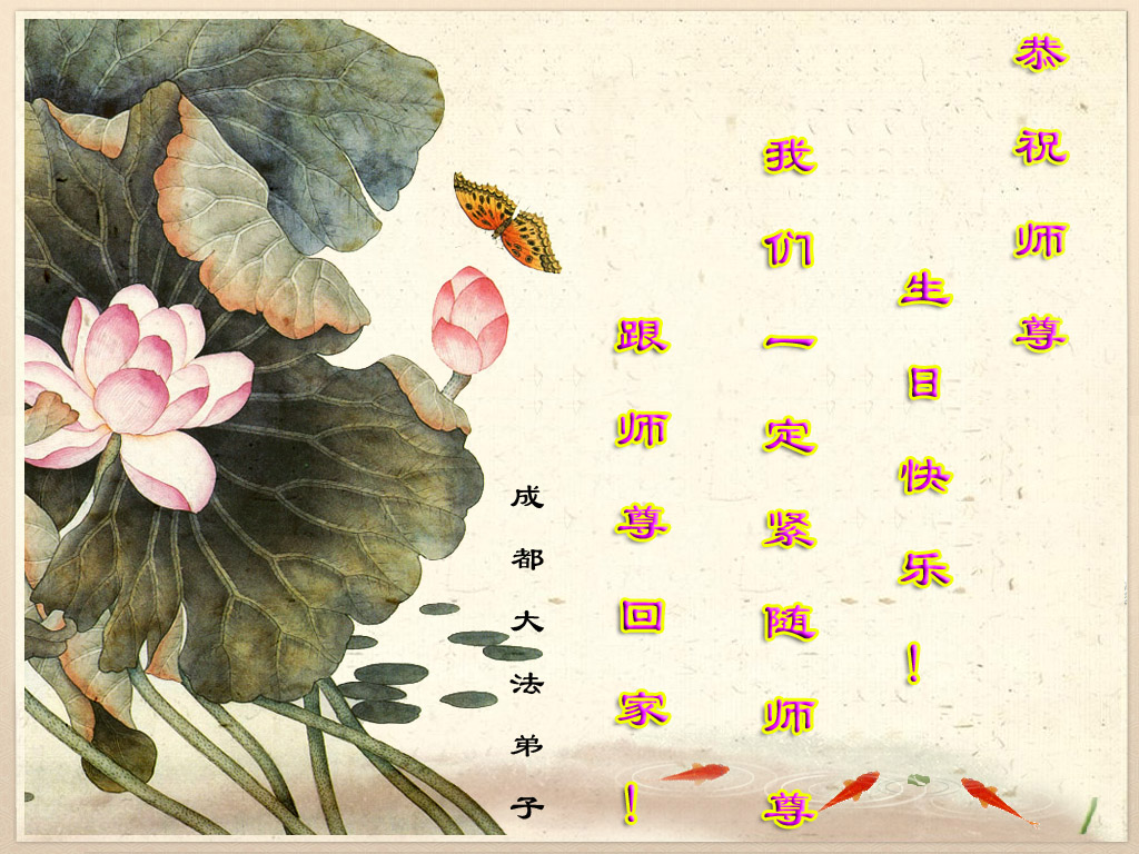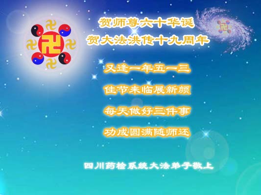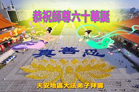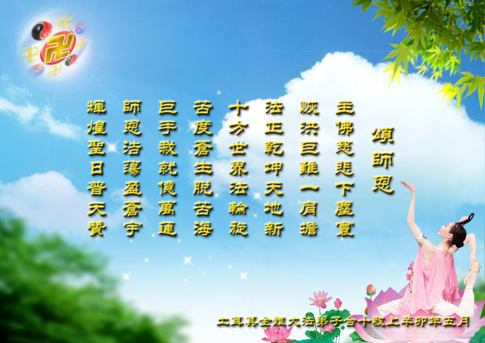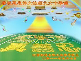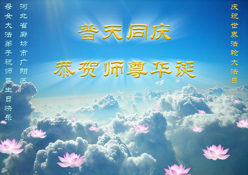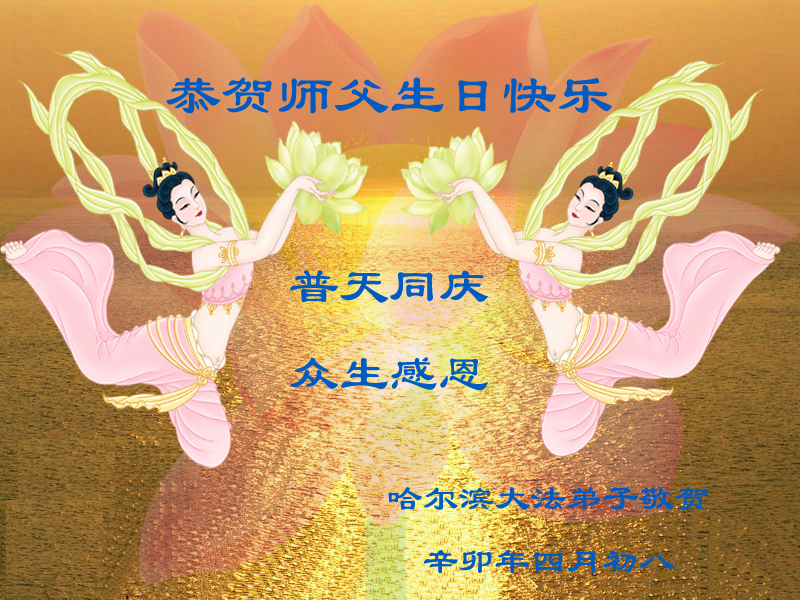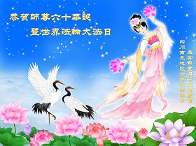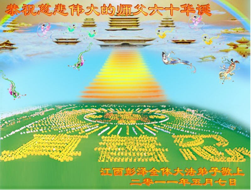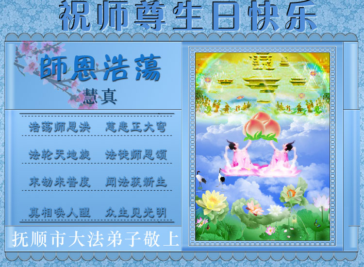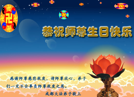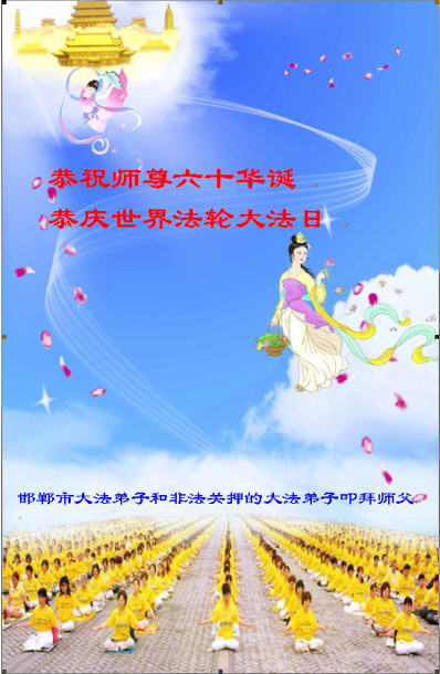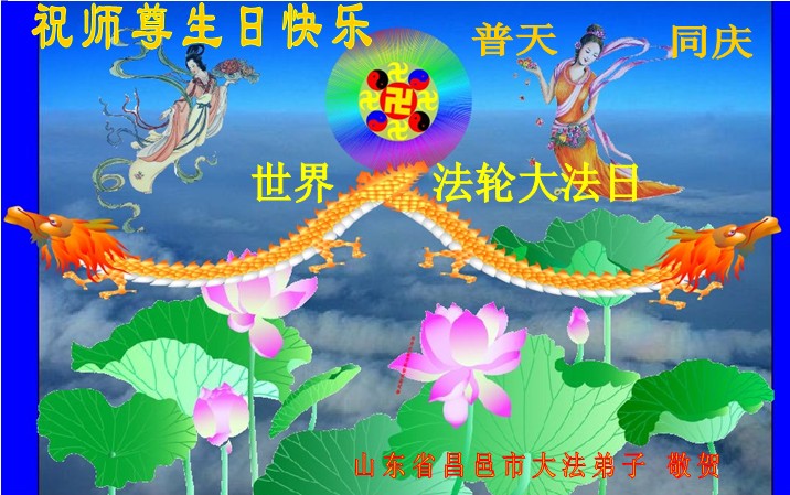 伴随着这种景象,响起了一种奇幻的音乐,并且有着天女散花。那时的我,心中有一种格外的崇敬,感觉是那样的纯正,又是那样的神圣,由衷的在心里唱起了《普度》、《济世》、《法轮大法好》等法轮功乐曲和歌曲。