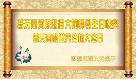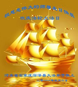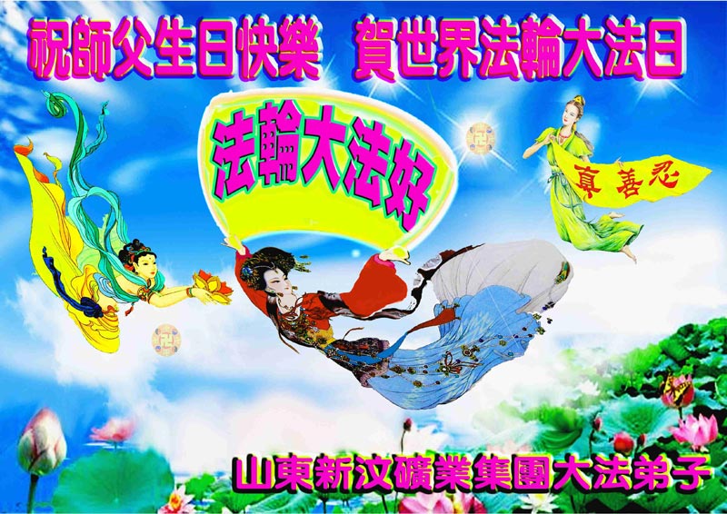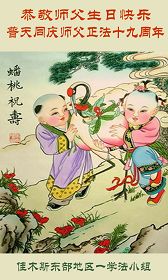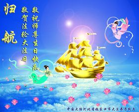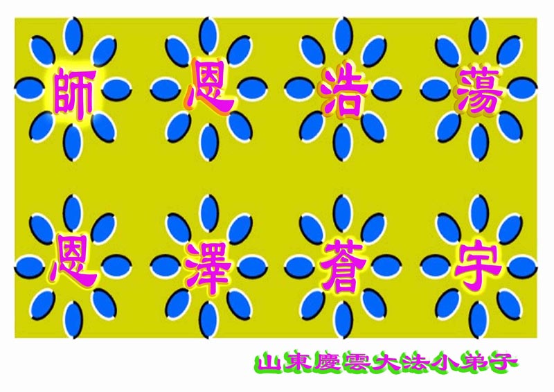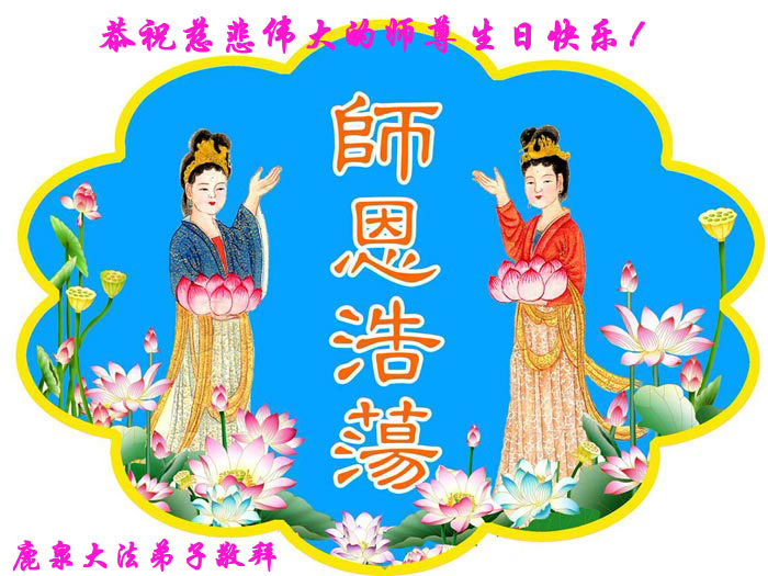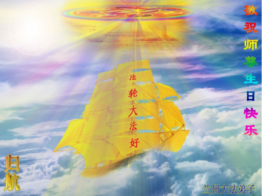 听课中,很多学员看到师父背后彩光映射。有的说:“台上有好多师父啊。”有个天目开了的学员,看到讲台变成一个大门楼,两扇大门都打开了,左右各站四位穿古代服装的武将,师父在门楼里面讲法。(当时他搞不清楚这些武将是什么人,后来听学员讲,这就是八大金刚。)课后,我跟师父说:“师父,我看到这礼堂的舞台竟是一只船,船周围浪花在翻腾;师父在船上庄严的讲法。我感到景象中的师父在说:‘我把这么好的法理,双手无条件的捧给你们,把你们带上路,还要再带你们一程。’”师父说:“对啊!对啊!我就是在度人啊!”
