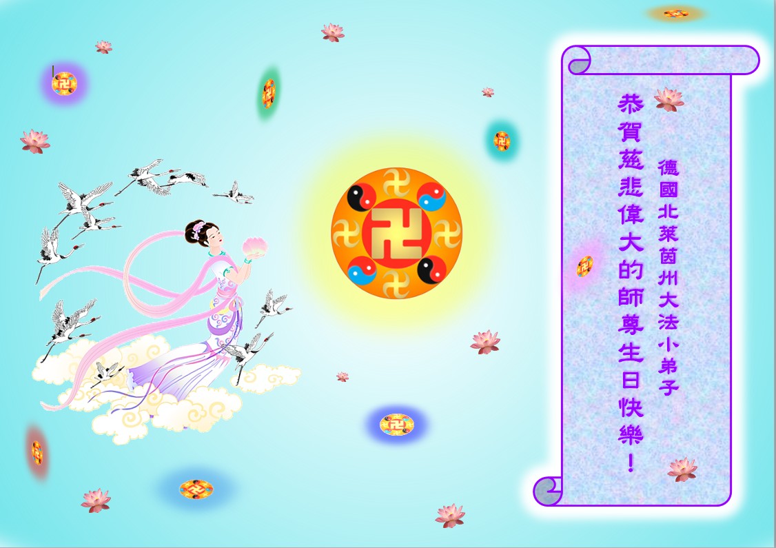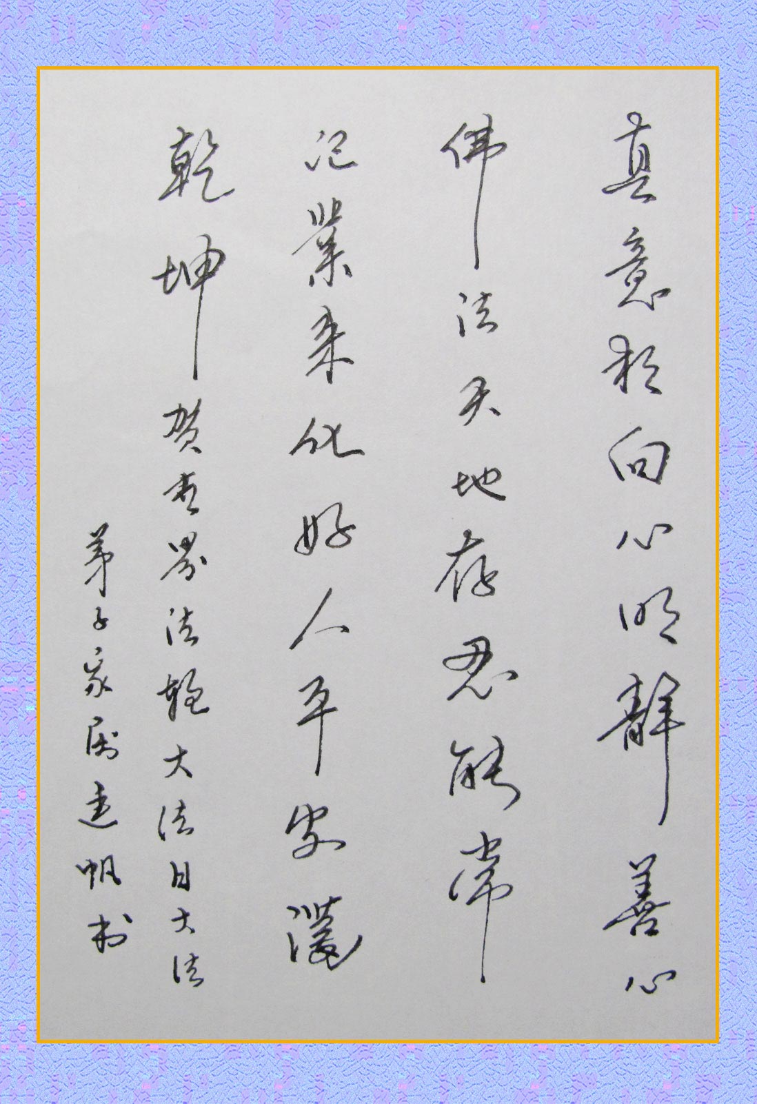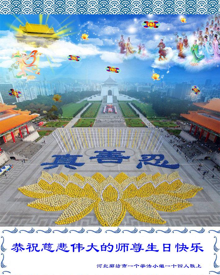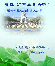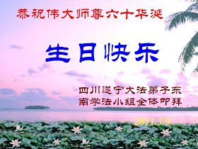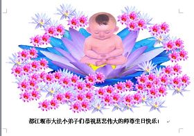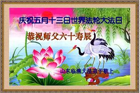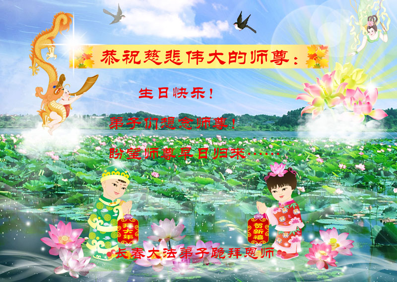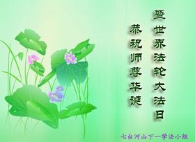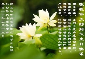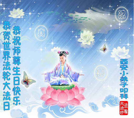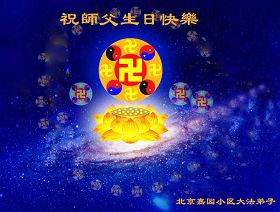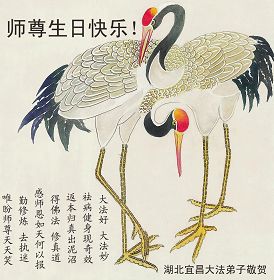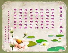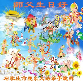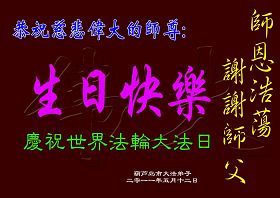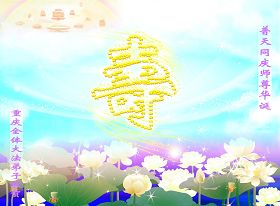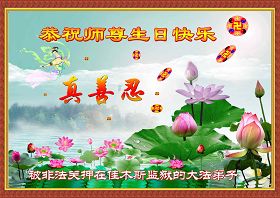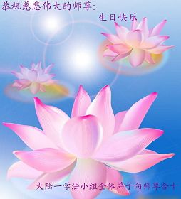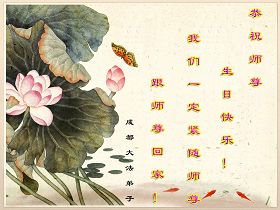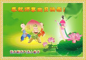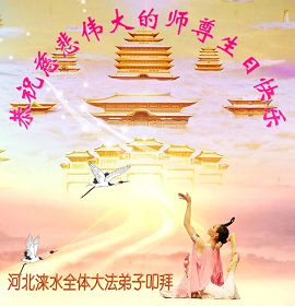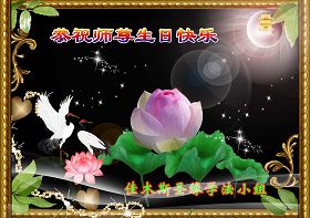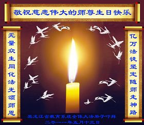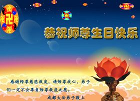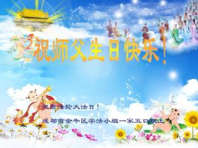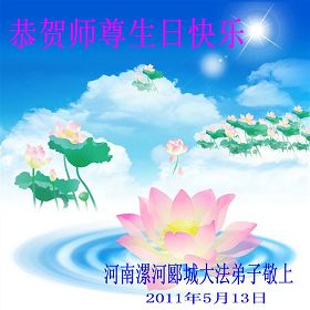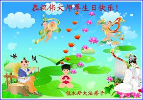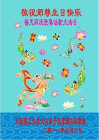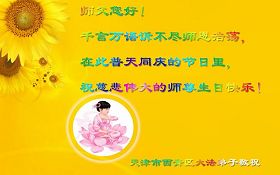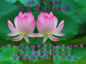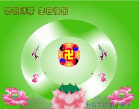 一天,我梦见师父,高高大大的,坐在那里,慈祥的微笑着,我单腿跪靠在身边,仰望着,就觉的师父是自己的父亲,自己是师父的孩子。这是我一生中真正的老师啊!我很兴奋,只知道好,就是百分之百相信师父所讲的一切。我明白了:人来到世间是修炼的,不是来过常人生活的;修炼是不断的去执着心;守德、修心性、修真、善、忍;这位老师非同一般,我心想:现在道德急速的大滑坡,老师是来更新人类的。