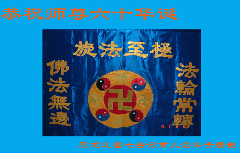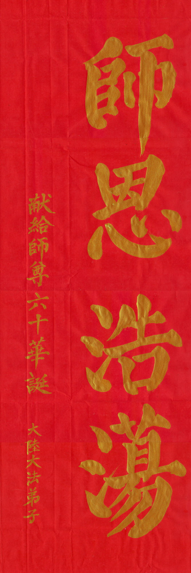 郑州班结束之时,许多学员献锦旗,最大的一面锦旗上写着一个大大的“佛”字,系由湖北学员敬献。
