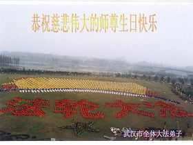 一位练别的功法的某某对一位法轮功辅导员说:“不论什么人到武汉传功,所挂的横幅,我一发功就掉了。法轮功的横幅,我连续发了十天的功,却丝毫未动,李师父的功真正是高。”他还说:“我在公园里看到练其它功的人,有的后面夹个大尾巴,有的半边黑脸,半边红脸。而法轮功炼功点上有一个金光闪闪的大罩,李师父在上面照场。”