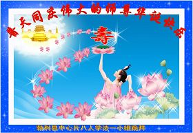 带功报告会上,师父给学员下法轮,要求大家伸出手来,掌心朝上。有人兴奋的叫了起来:我看见了,看见了!看见了彩色的轮子在手心转;有的说象个球似的,有的人感到手心发热,也有的感到手心发麻,还有的看到法轮布满了礼堂的整个空间,法轮落在了学员的手上、肚子上、头上无处不有。整个会场一片惊叹之声,无不见证了大法的神奇。