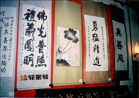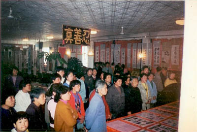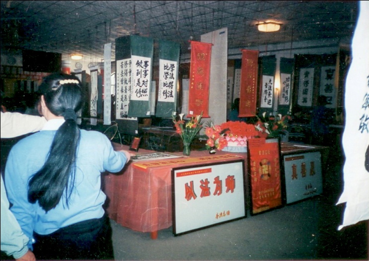 根据曾参观展览的双城同修回忆,首届书画诗歌展览场面宏大!展览期间,个别学员也曾拍下多幅照片。但是,大都毁于一九九九年七月二十日之后,能够留存到今天的,不超过十张。