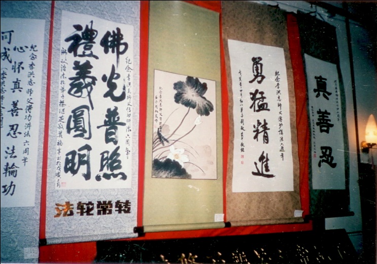 ![]() 原定于1999年進行的“双城第三届法轮大法书画刺绣作品展”部份存留作品 |