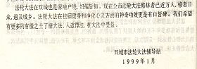 ![]() 1999年7月20日前,在双城法轮功学员组织召开的修炼切磋交流会现场拍摄到的法轮 |