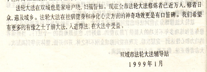一九九九年七月二十日前,在双城市的任何一个公共场所都可以随意张贴法轮功宣传简介。