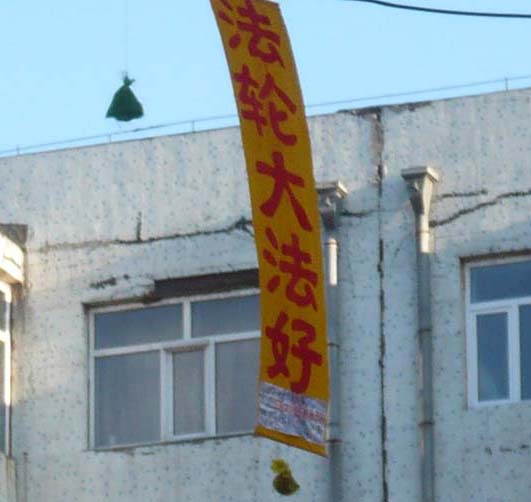 此后,早起的双城市民,常常会看到在高处迎风招展的真相条幅;打开闸板开始营业的小商小贩们,会看到夹在门上的真相传单;骑自行车的人会惊奇的发觉,就是在一转身的时间里,自己的车筐中就多了一张真相光盘;住在楼内的市民在打开防盗门时,猛然间发现,自己家门旁正有一张法轮功真相资料在朝阳中熠熠生辉……