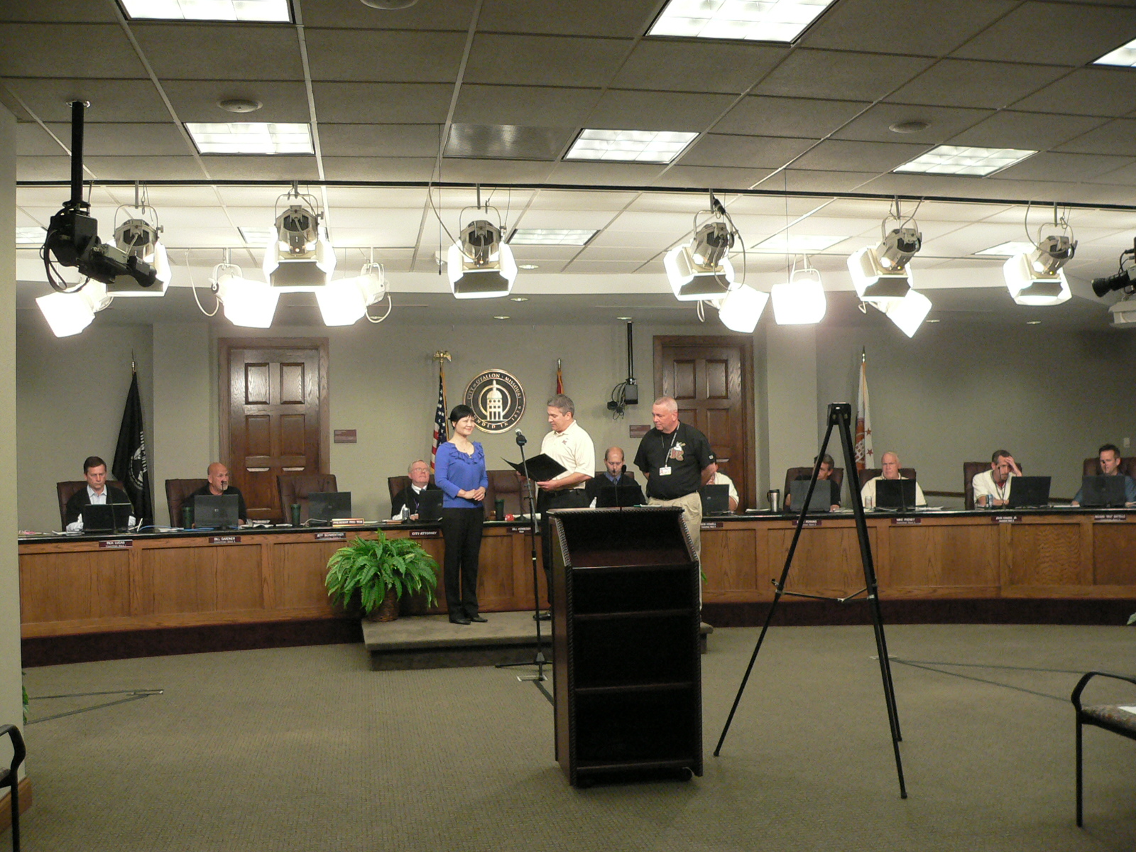 ![]() 奥法隆市长在二零一一年五月十二日晚的市议会上亲自为法轮功学员颁发褒奖 |