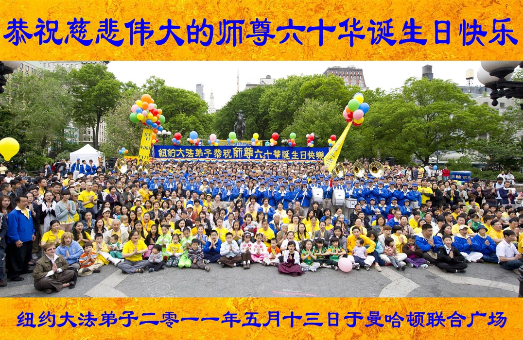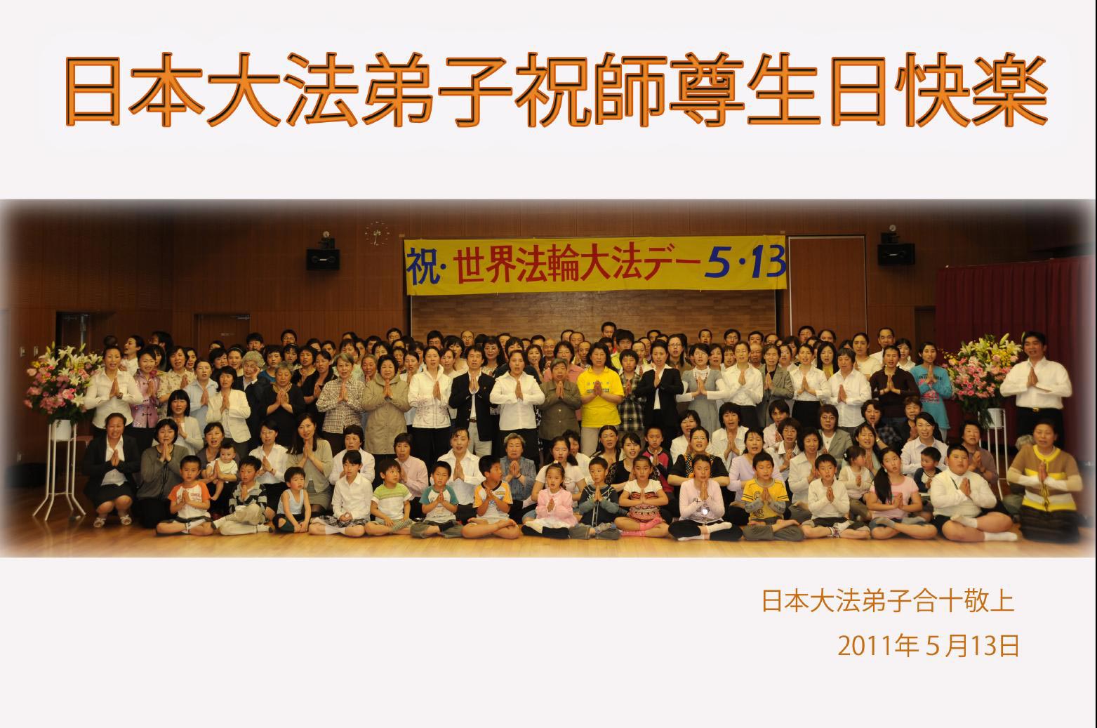 【明慧网二零一一年五月十四日】今年的五月十三日,是第十二届世界法轮大法日,是法轮大法洪传十九周年,是慈悲伟大的李洪志师尊六十华诞。在这普天同庆的节日,世界各地大法弟子发来录像、贺卡和贺词,恭祝师尊生日快乐!感谢师尊对弟子的慈悲救度!