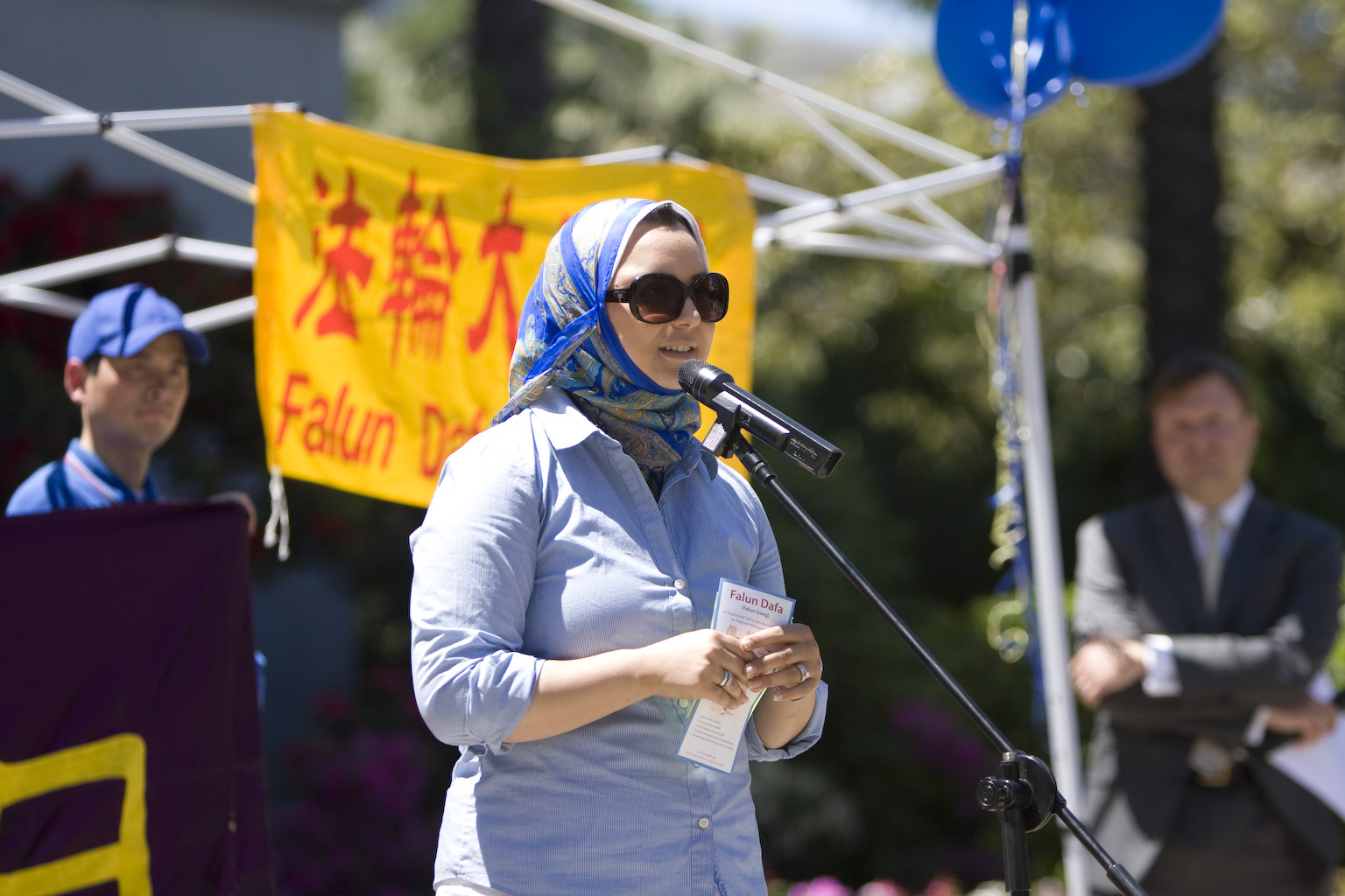 加州众议员罗杰.迪金森(Roger Dickinson)的代表萨拉.穆萨(Sarah Moussa)到现场表示对法轮功学员的支持。穆萨表示:“真善忍是全世界都需要的。衷心希望沙加缅度能成为法轮功学员的家。”
