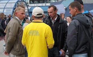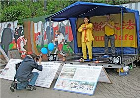 ![]() 波兰民众观看法轮功功法演示 | ![]() 路人仔细阅读真相资料 |