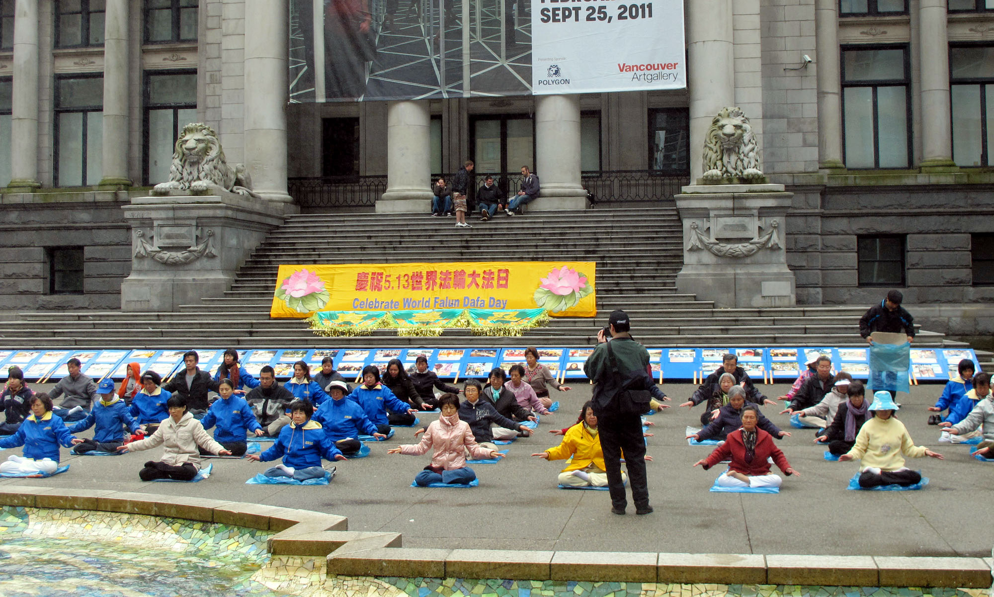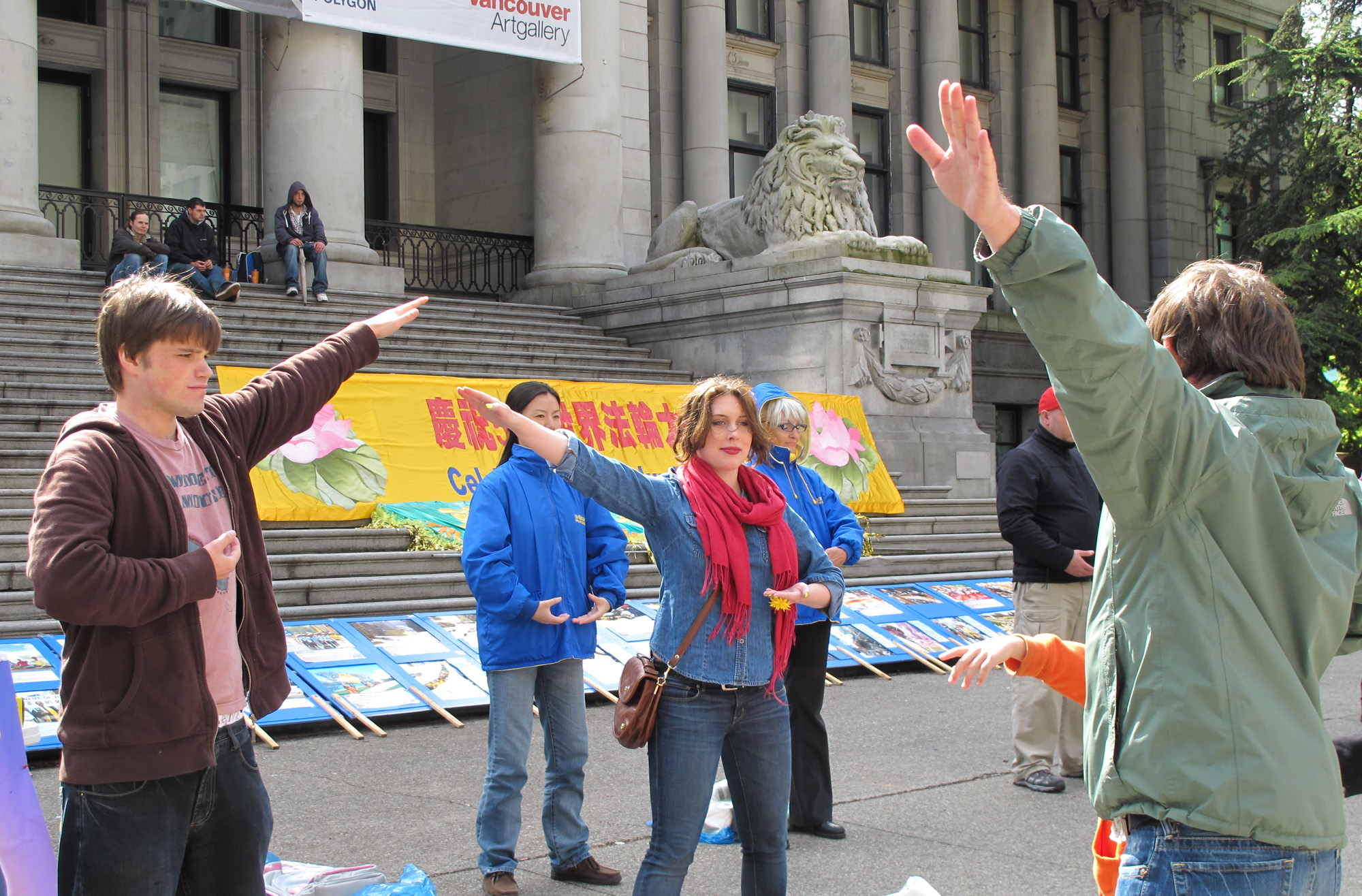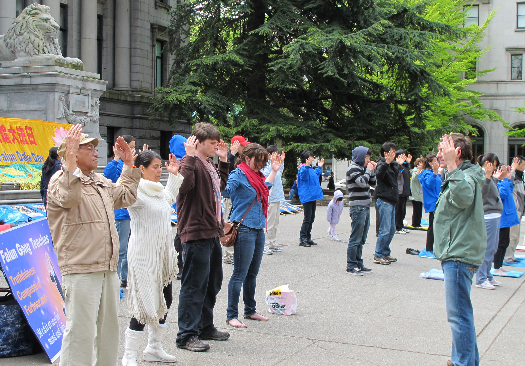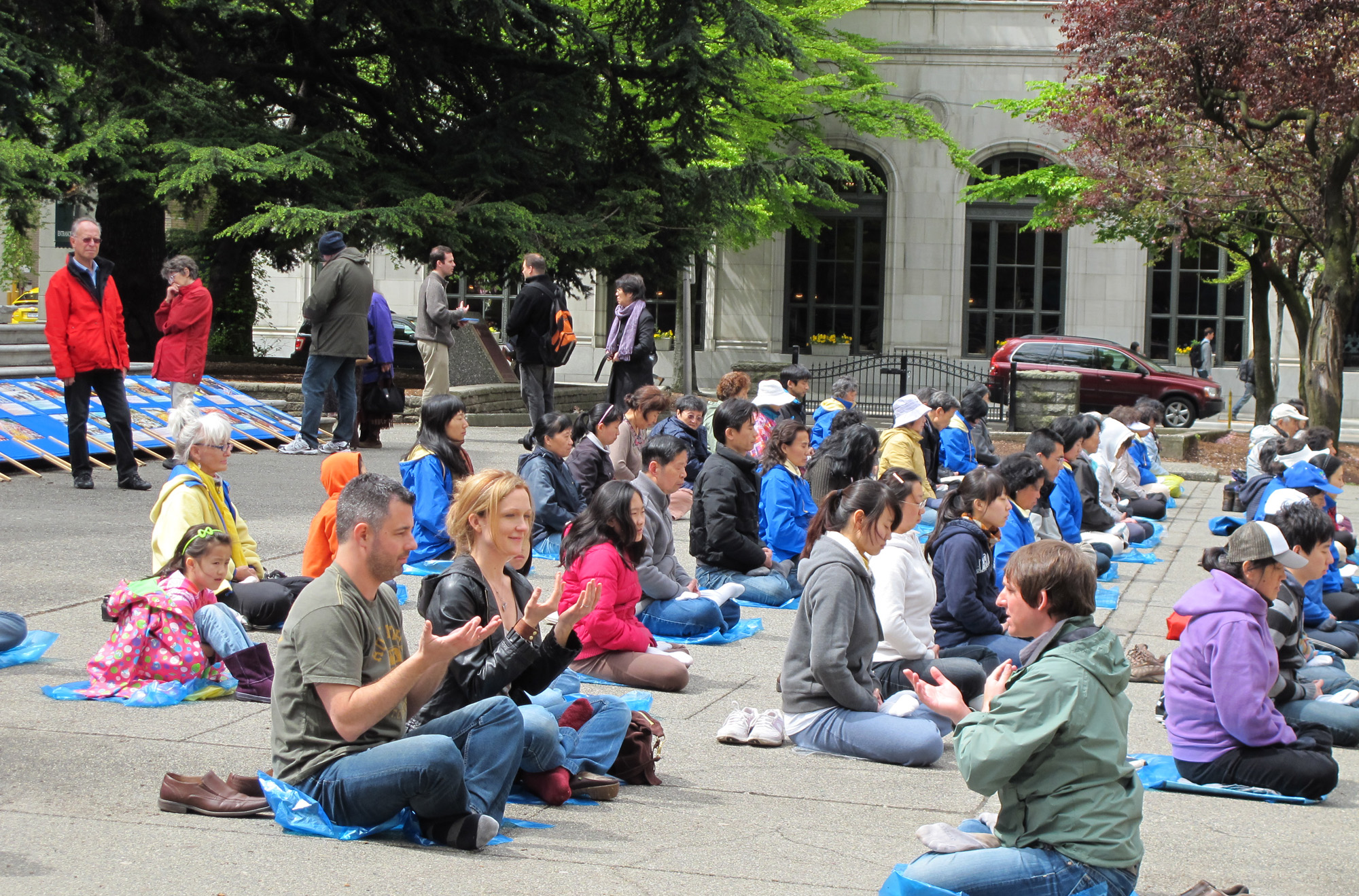 ![]() 五月十四日,法轮功学员在温哥华市中心艺术馆广场集体炼功 |