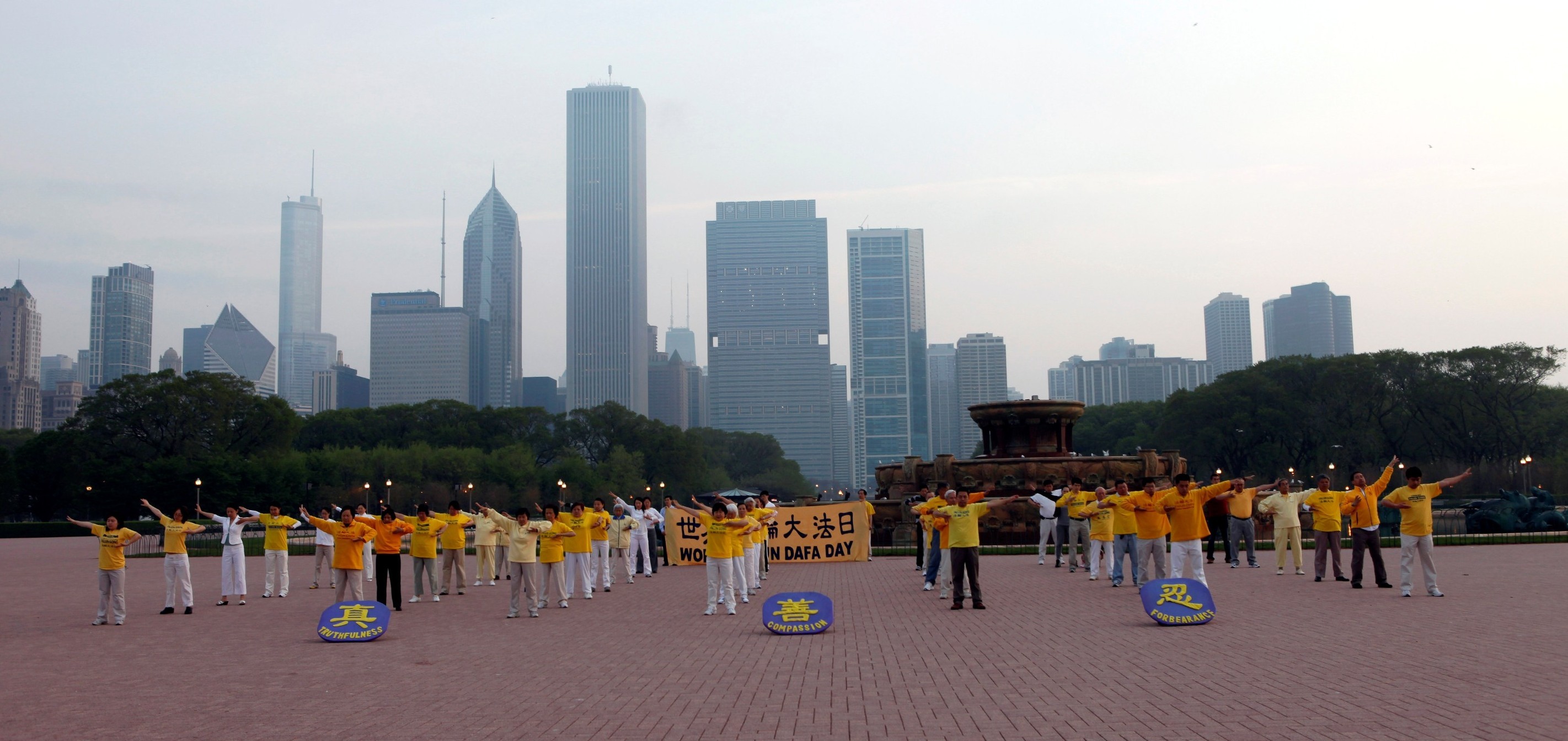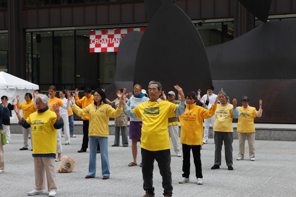 ![]() 法轮功学员汇聚戴利广场炼功 |