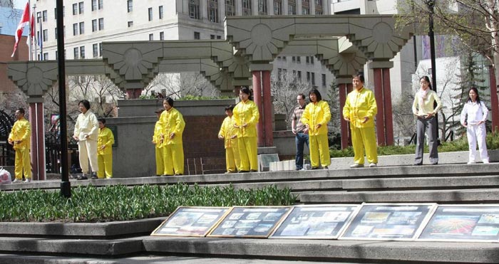 ![]() 卡尔加里法轮功学员在奥林匹克广场功法演示 |