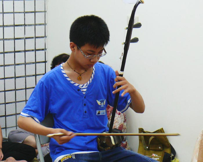 ![]() 少年弟子拉二胡,颂赞法轮大法好 |