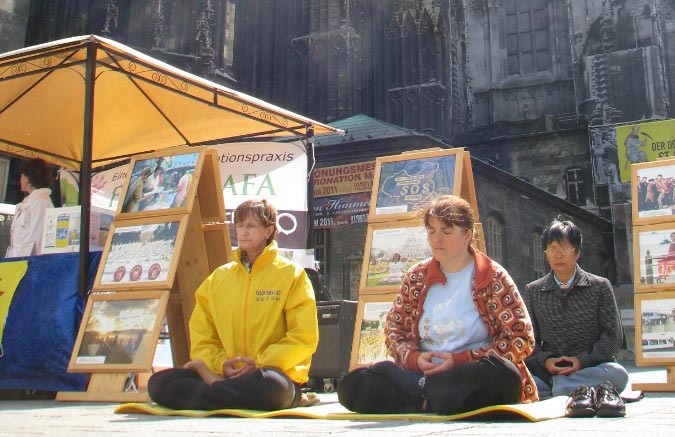 ![]() 法轮功学员在维也纳市中心的史地文大教堂广场庆祝第十二届世界法轮大法日 |