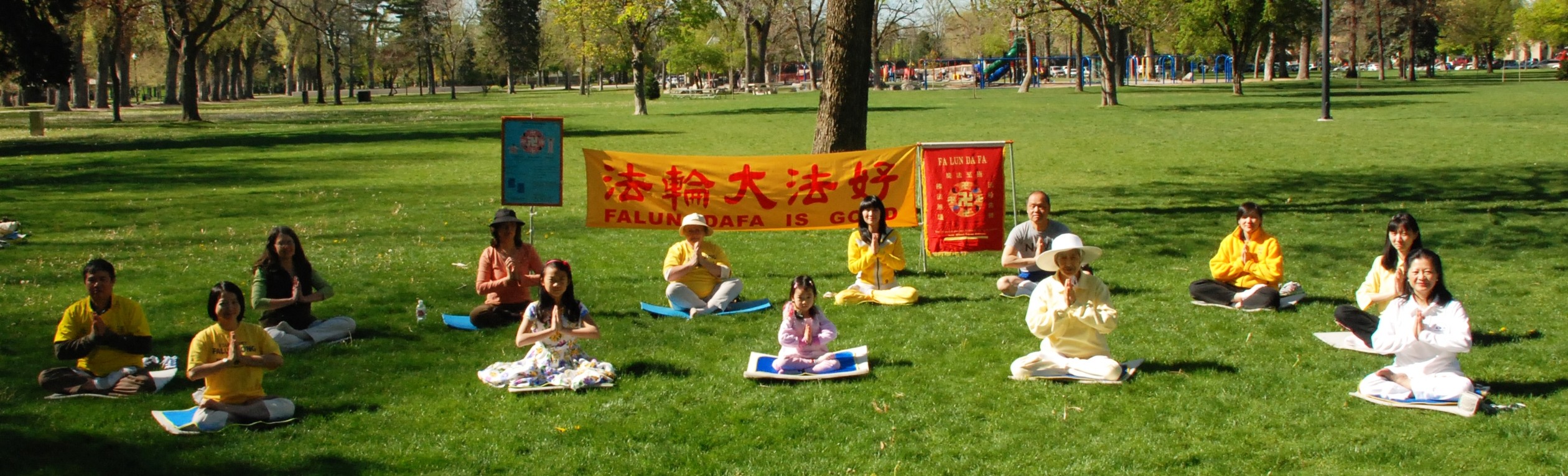 ![]() 法轮功学员在盐湖城自由公园集体炼功,感谢师恩 |
