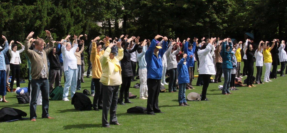 ![]() 法轮功学员在瑞士首都伯尔尼玫瑰园集体炼功 |
