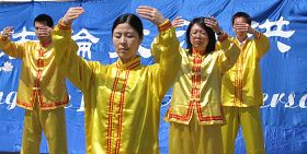 ![]() 法轮功学员展示五套功法 |