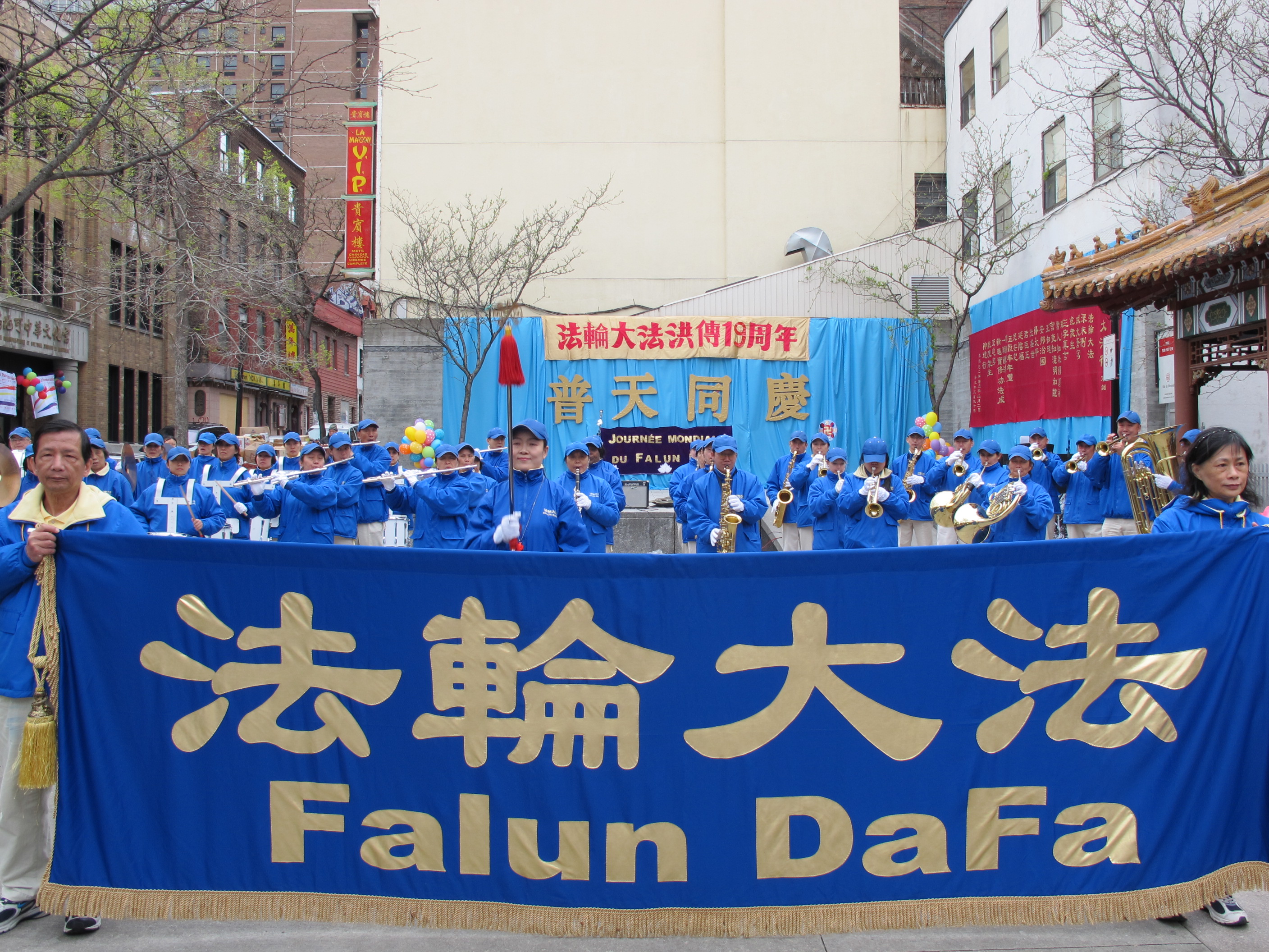 在连续四个小时的庆祝活动结束前,大法弟子合唱《法轮大法好》,表达大法弟子对师父救度之恩的感激和作为一名大法弟子的自豪。