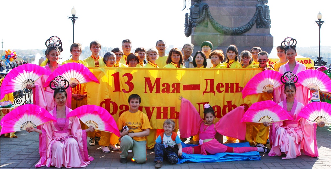 法轮功学员在在俄罗斯远东地区的伊尔库茨克市庆祝世界法轮大法日