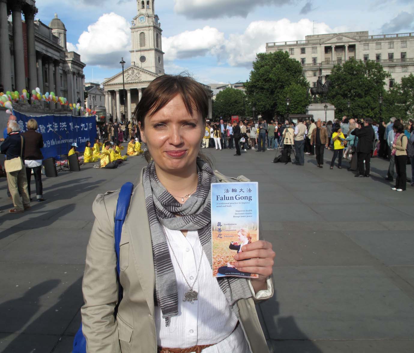 阿妮塔参加英国法轮功学员庆祝世界法轮大法日活动