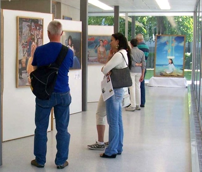 本次美展共展出四十八幅不同风格、不同内涵的作品,展现天人合一的美妙境界、生命同化真善忍的升华、中共邪*党-残酷迫害法轮功中善与恶的表现,以及善恶有报的宇宙法则。其中二十六幅画作是第一次与瑞士观众见面。