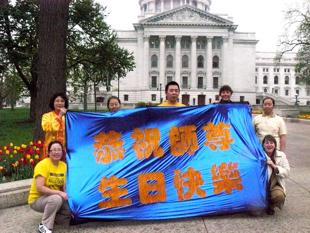 首府广场是前往麦迪逊观光游客们的必经之地,活动当天,法轮功学员向来往的游客递上法轮功真相传单的同时,也向游客派发特别定制的气球和小莲花,与游客们分享自己修炼法轮功之后的美好感受。当得知法轮大法是有益身心的高德大法后,当场就有许多人询问学功的地点和时间。