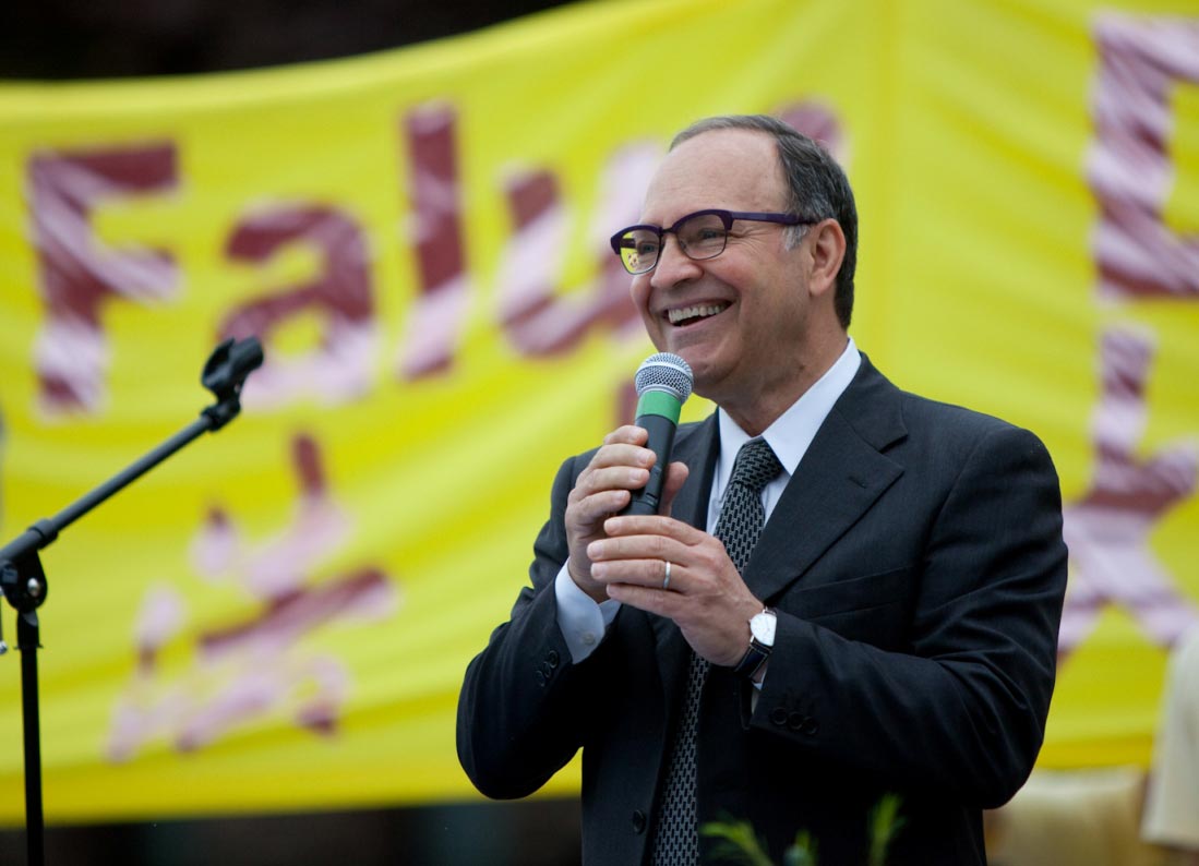 欧利弗(Joe Oliver)是来自多伦多市唯一的联邦部长,获任命联邦自然资源部长后,他参与的第一次公众活动,就是庆祝法轮大法弘传的集会。他代表加拿大政府,问候全世界所有的法轮功学员。