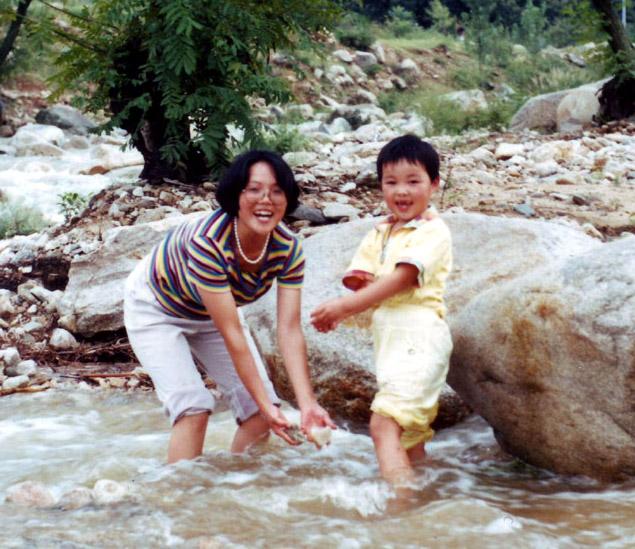 ![]() 伊淑玲在大学时期的照片 | ![]() 伊淑玲母女在2000年夏季在蒙阴百花峪的照片 |