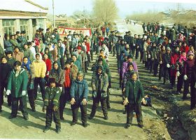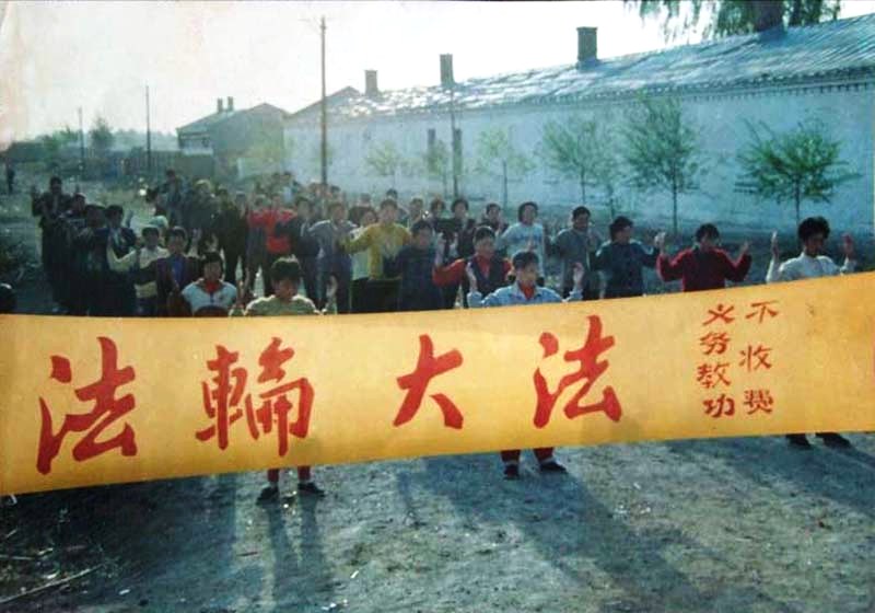 当时是在村中的一块空地,人们也都是第一次听说“法轮功”这个名词,又见有这么多人在炼。人们都觉着新奇,纷纷来看。我也随着来看。在从未听到过的无比美妙音乐声中,学员们祥和宁静的向人们展示着法轮大法的五套功法。场外有两三个学员在解答着人们提出的一些疑问。向人们介绍一些经过炼功之后思想道德发生的一些变化和身体重病奇迹康复的具体事例。从这天起,村里人知道了法轮功,知道了炼法轮功能使人向善,能祛病健身。