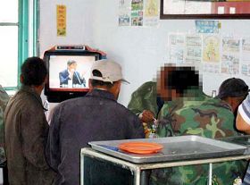 在一个乡镇的小吃部(上图),“法轮大法好”的粘贴抬头就可以看到,新!唐!人:的电视节目不间断播放着,一進门就让人感到祥和气氛。来这里吃饭、买烧饼的人总不间断 。因为新!唐!人:的正的能量使很多人受益。有一个小包工头很愿意领着工人来这里吃饭。他说:在别的饭店,花同样的钱,工人吃不饱。可是在这就能吃饱。一边吃饭一边看着新!唐!人:。“法轮大法好”的福音滋润着每个人的心田。这里象一朵盛开的莲花一样,她的清香象店里的美食一样纯厚而弥远,吸引着找寻希望的人们。