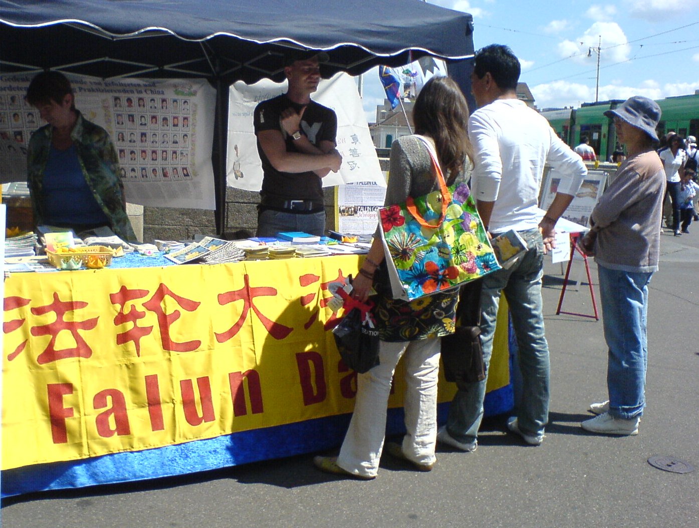 活动期间来了一个尼泊尔的小伙子,看了看学员递给他的资料,用不太熟练的德语说他看不懂,紧接着问:“是不是共产党又害人了?”学员说“是”。他说:“给我一份资料,我送给别人看。”