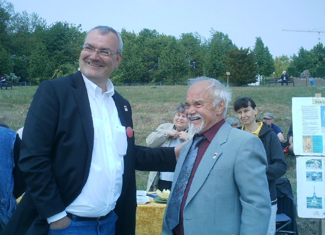 ![]() 德国工会联合会普法尔茨州主席迪特马尔•穆斯凯德(左)与工会西普法尔茨区前主席海纳•福兰斯(Heiner Flesch) 交流有关法轮功及中国大陆的情况 |