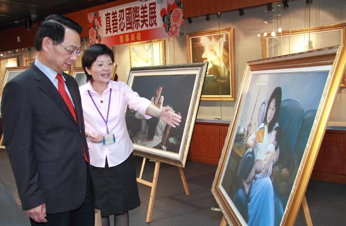 【明慧网二零一一年五月七日】(明慧记者宋心明台湾新竹报导)“真善忍国际美术巡回展”二零一一年四月二十七日至五月十五日首次来到台湾新竹县展出五十多幅作品。四月三十日开幕当天,吸引许多政界和艺术界人士到场共襄盛举。