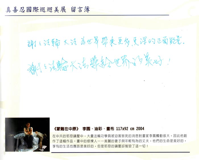 观众欣赏完真善忍美展后的留言──加油,法轮功