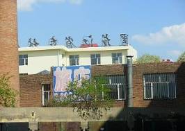 ![]() 黄色小二楼为洗脑班侧面。 | ![]() 洗脑班后身,为14、18路的迎宾桥站点。 | ![]() 洗脑班的后窗。 |