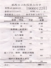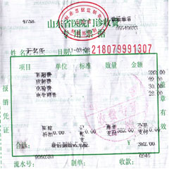 ![]() 收费票据,注:单据上的金额是382元;名字是无名氏(当时没报名) |