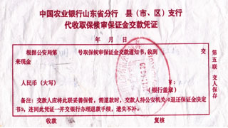 ![]() 现金缴款单 | ![]() 取保候审保证金交款凭证 |