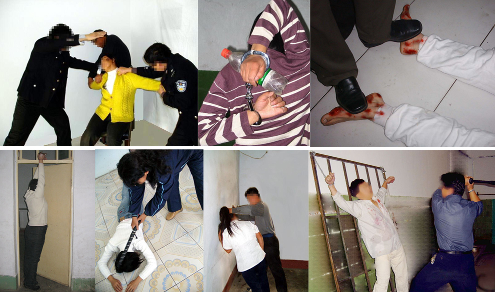 ![]() 酷刑演示:打耳光、背铐、踩脚、吊铐、电棍电、抓住头发撞墙、用器物殴打 |